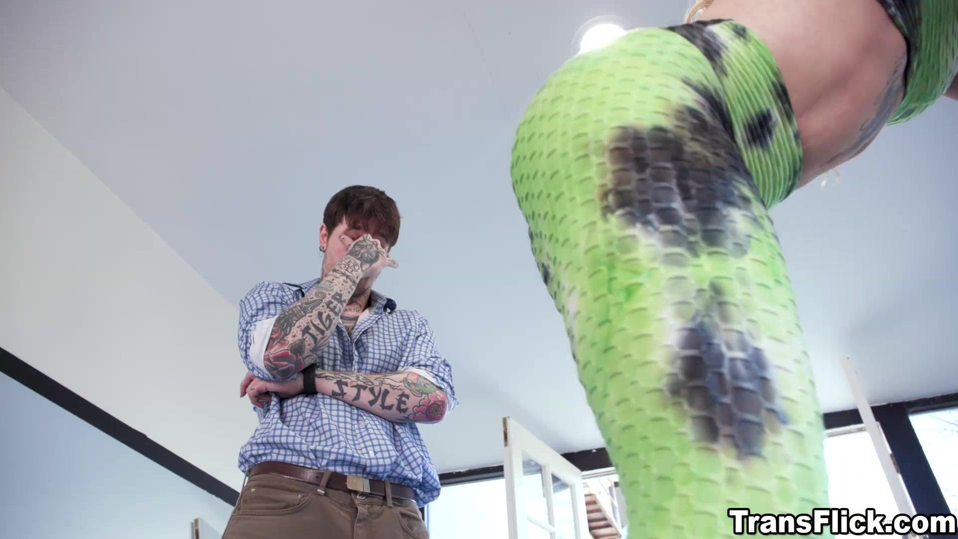 Watch astrans Gracie Jane meets her friends husband James Blow as he helps her fix his gym aparatus but ended up her seeing him staring at her butt so she suggest why not have some naughty fun with her this time and James goes hard fucking her