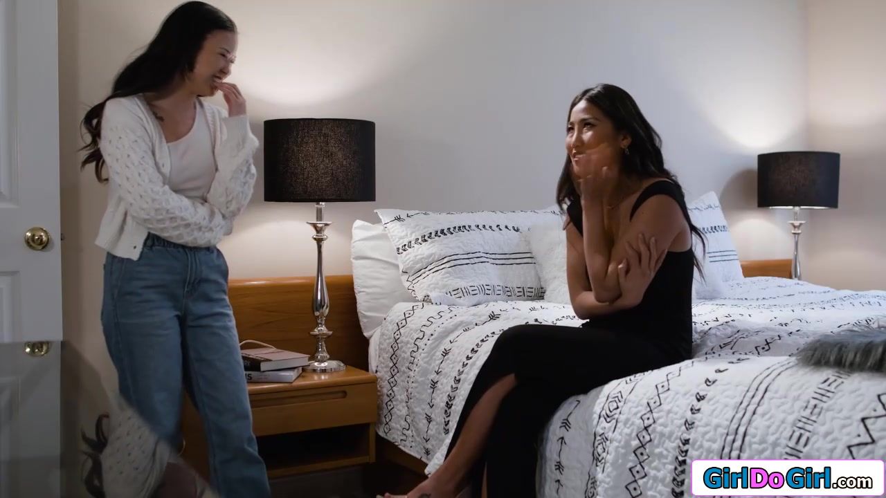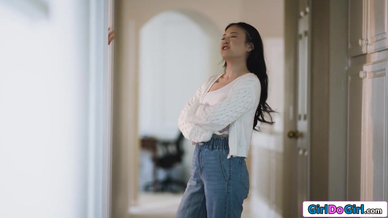 This hot asian chick knocked at my door and asked if she could take a look at her old bedroom.I made my move and kissed the petite brunette hottie.I sucked her tits and licked her wet snatch.She put my panties aside to eat out my hairy pussy