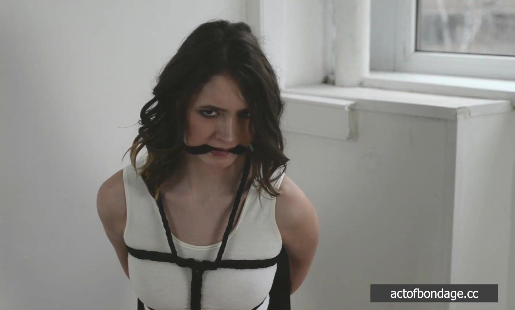 Stripped to her underwear pretty Disha was tied up within silk ropes. The bound girl squirmed standing in front of the camera, sitting on the chair, kneeling on the floor. After all Disha was hogtied showing us her beautiful bare feet which become a little bit dirty during this act of bondage.