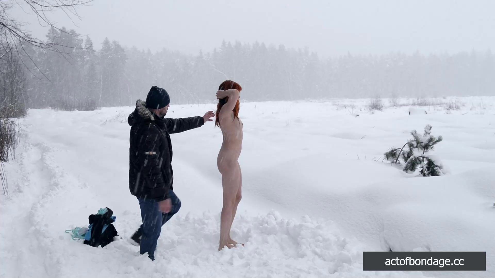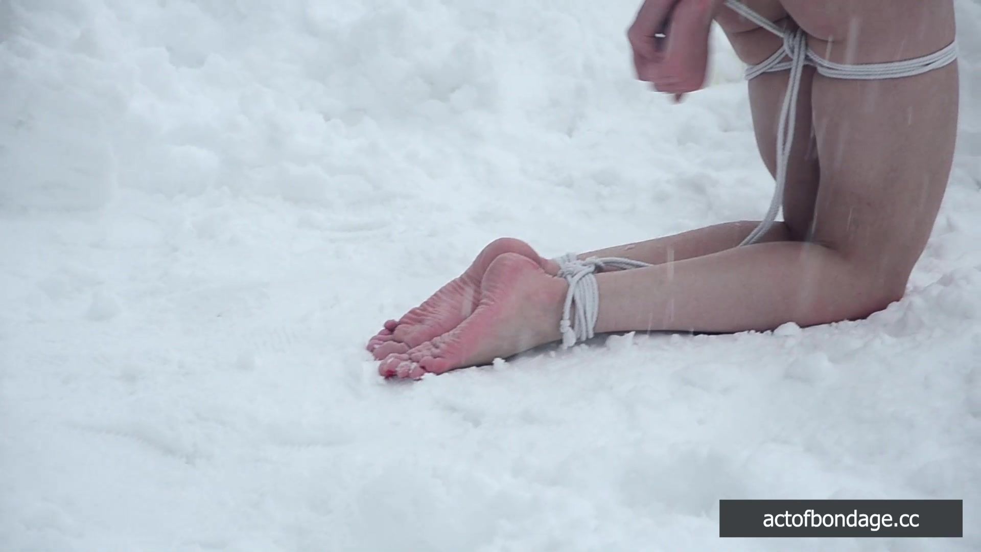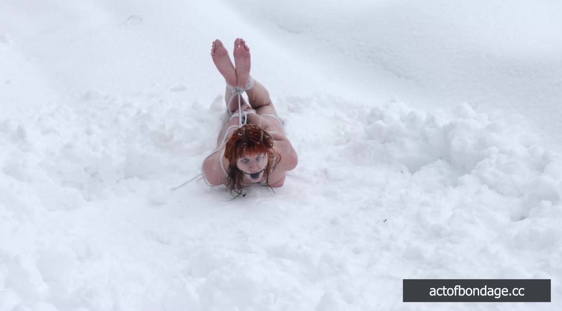 Totally naked and barefoot, Greta is tied up in bondage on a freezing winter day, her skin exposed to the harsh elements. Her pulse quickens as the rope digs into her soft flesh, her nipples hardening in the cold air.