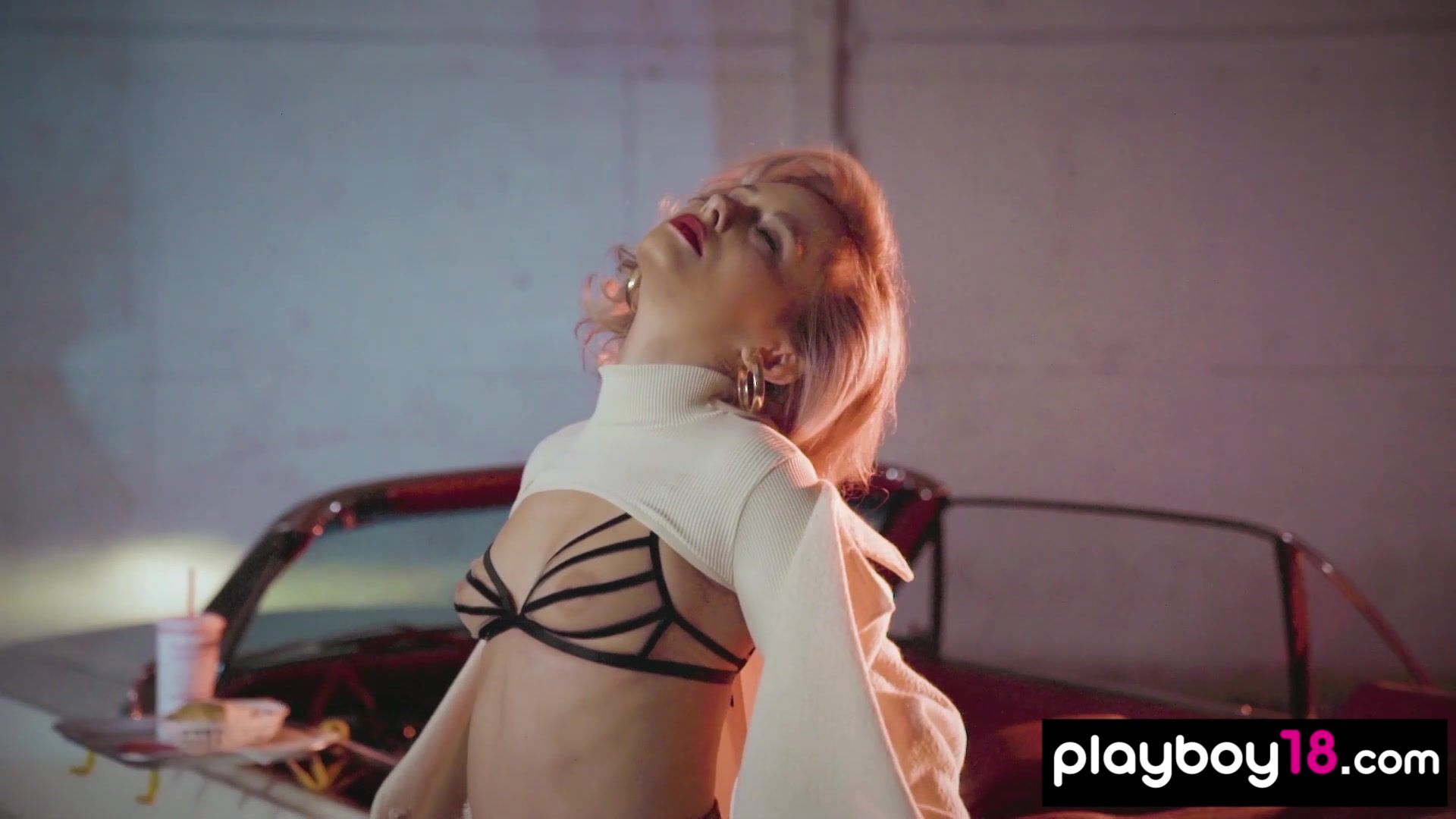 Glamorous blonde muse Polina with perfect boobs is stripping in a fancy car She is taking off her sexy lingerie slowly to show us every secret of her amazing all natural body and her shaved pussy then the hot naked beauty is posing