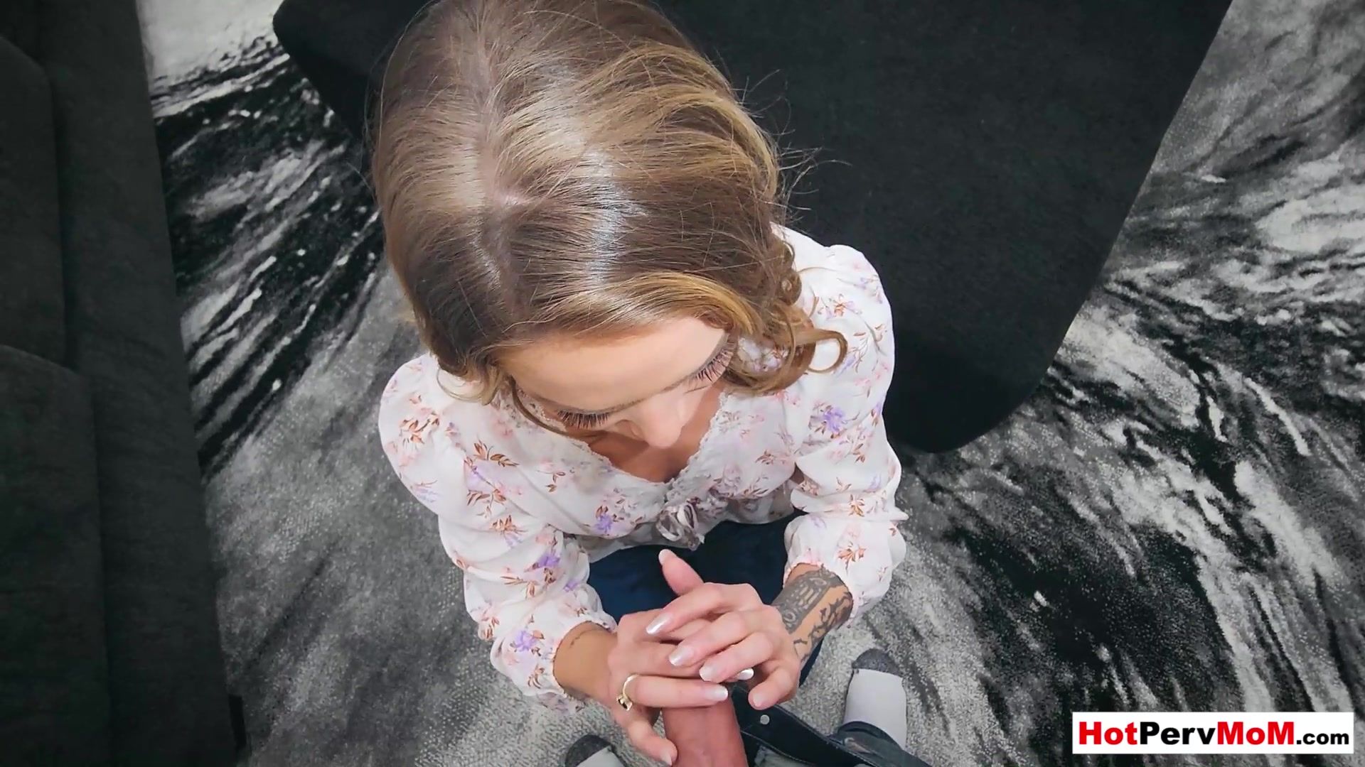 Petite brunette MILF stepmother Athena Anderson wants to keep her stepson at home and out of trouble so she has a nasty plan She gets on her knees and grabs his big cock to give him a sensual blowjob and calm him down
