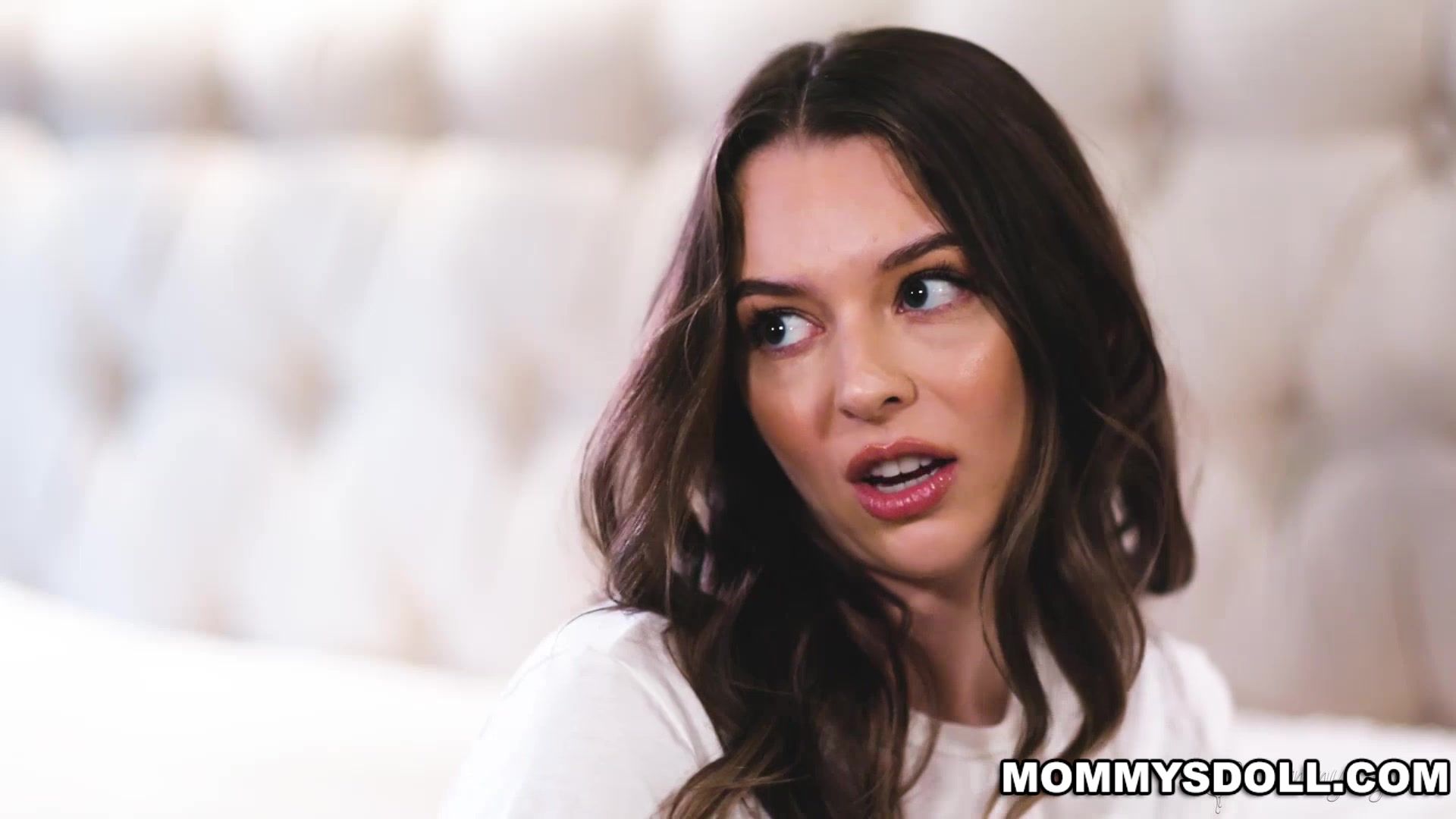 Rachael Cavalli is doing laundry when she walks in on her stepdaughter, Lily Larimar, masturbating while watching porn. Lily is mortified at having been caught but Rachael assure her it's fine! They settle in next to each other, watching some steamy scenes together, while masturbating side-by-side.