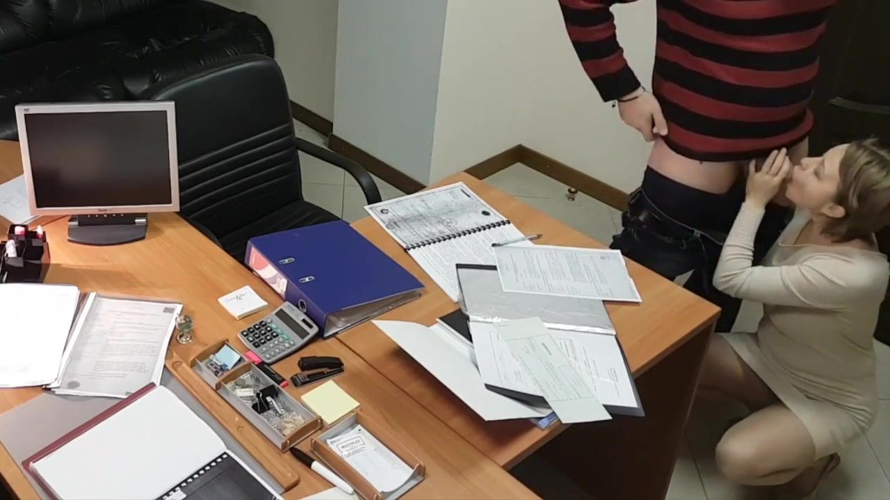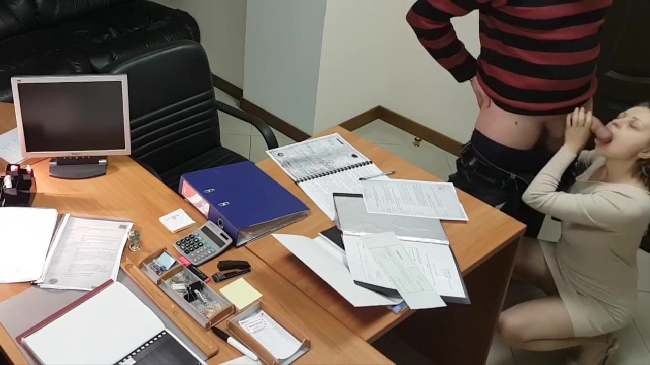 Teen secretary sucks and fucks her old boss in the office