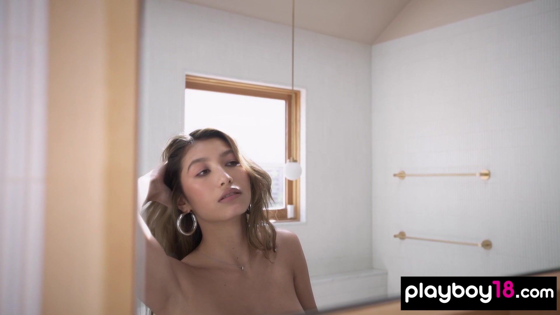Exotic naked babe posing in the bathroom