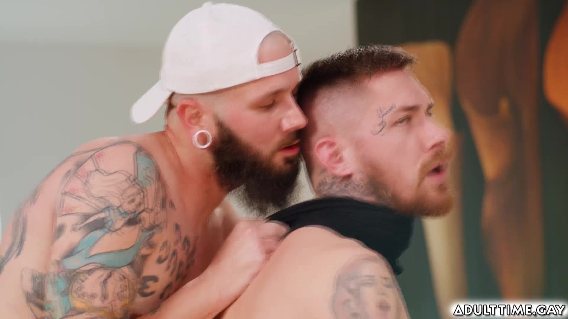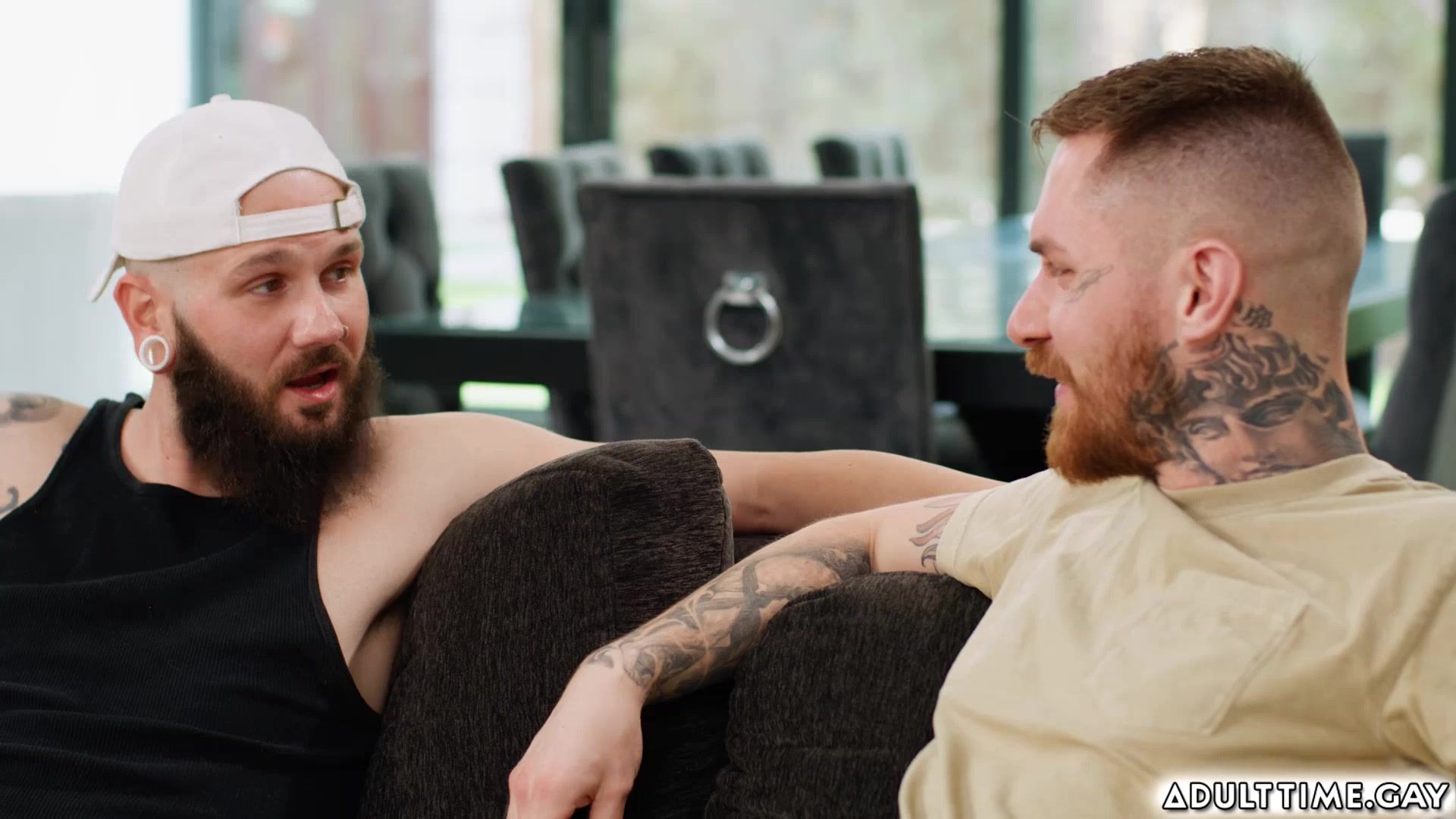 Johnny Hill and Zak Bishop are old friends who have decided to reconnect so the two put on some porn and start to jerk themselves off together. As they get more aroused, they sneak peeks at each others junk. They get a bit closer, and Johnny starts to express curiosity about how it feels to fuck guy