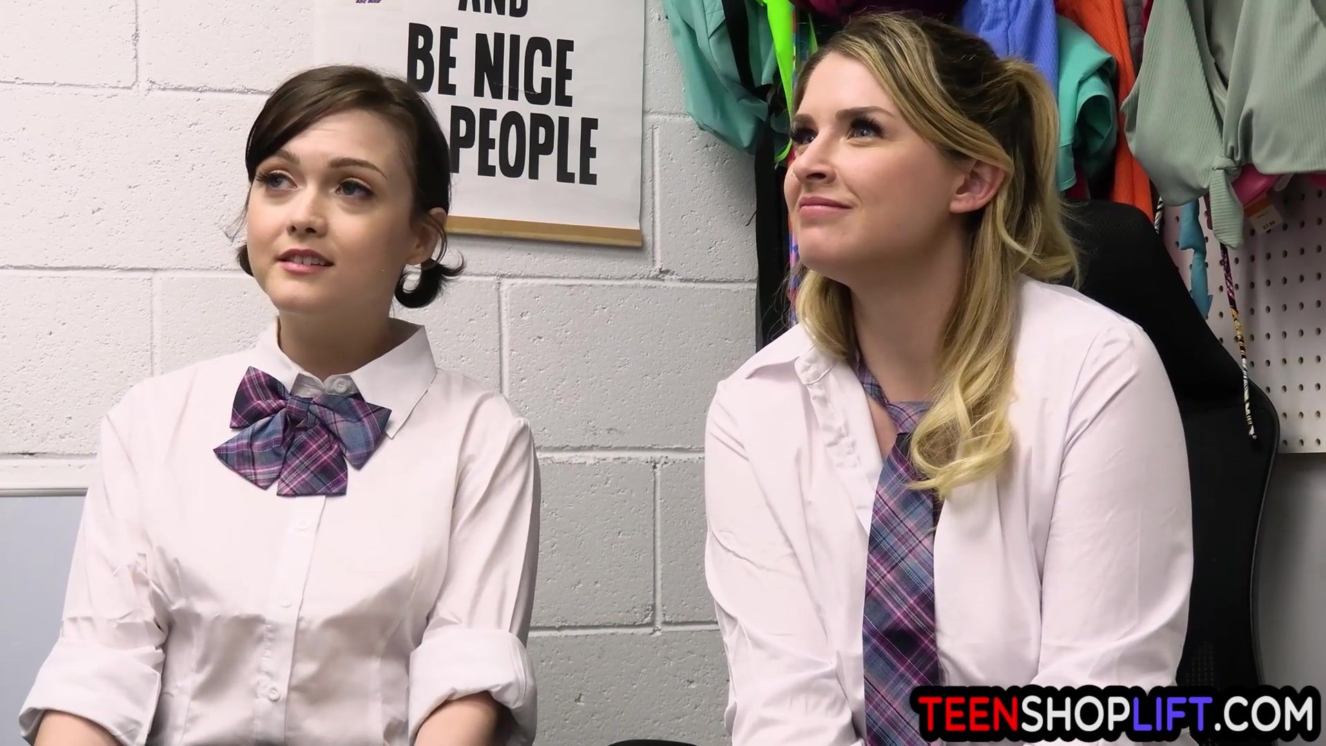 Catholic teens Riley Reign and Jade Valentine both get framed with stealing by a corrupted Lost Prevention officer who had them in his back office of the store and they had nowhere to go! They better cooperate or he would call the real cops on them!