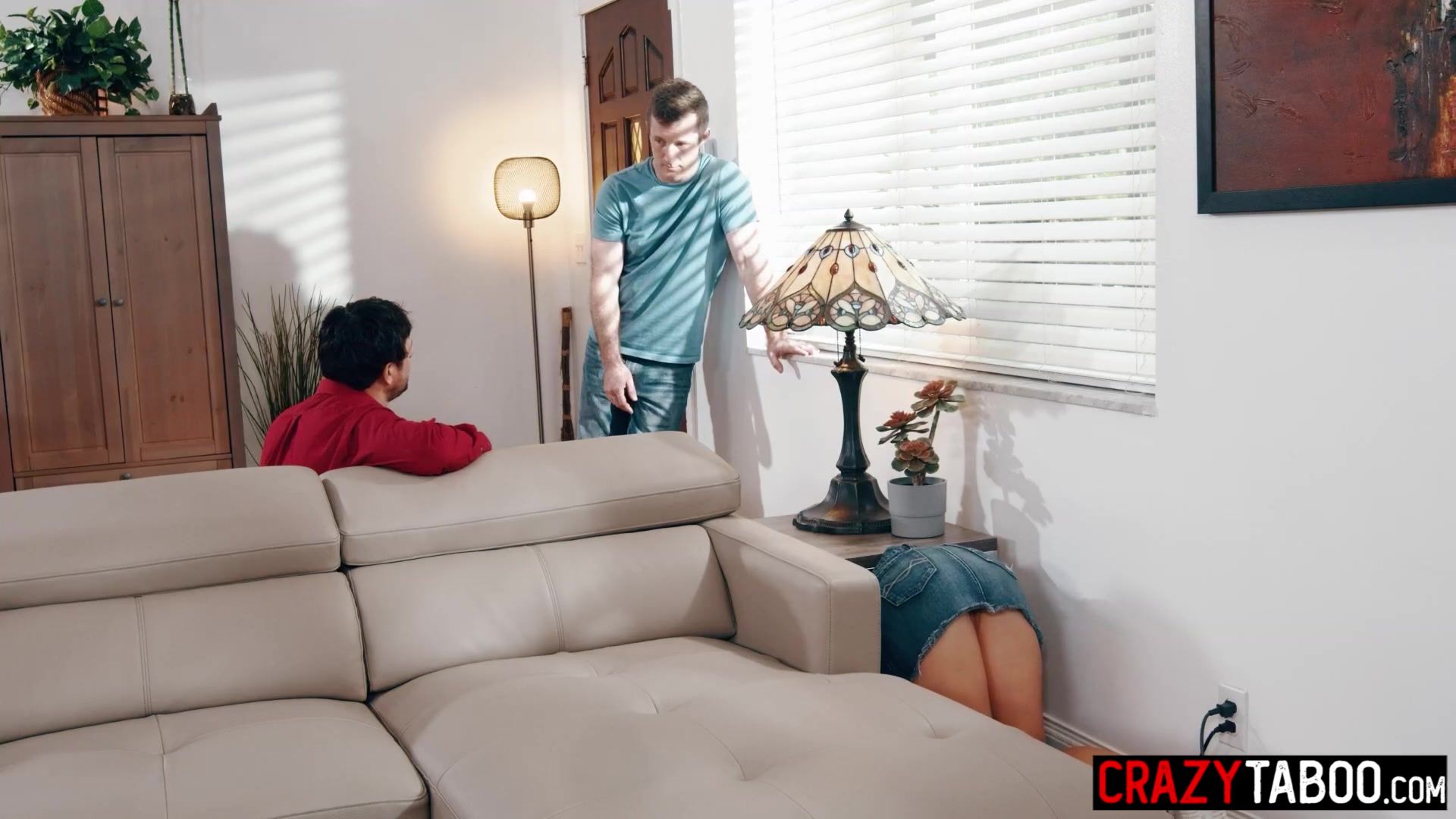 Faux Hostel Halloween Off The Hook - Stuck Under A Couch two - sandy-haired and brown-haired get pumped while stuck