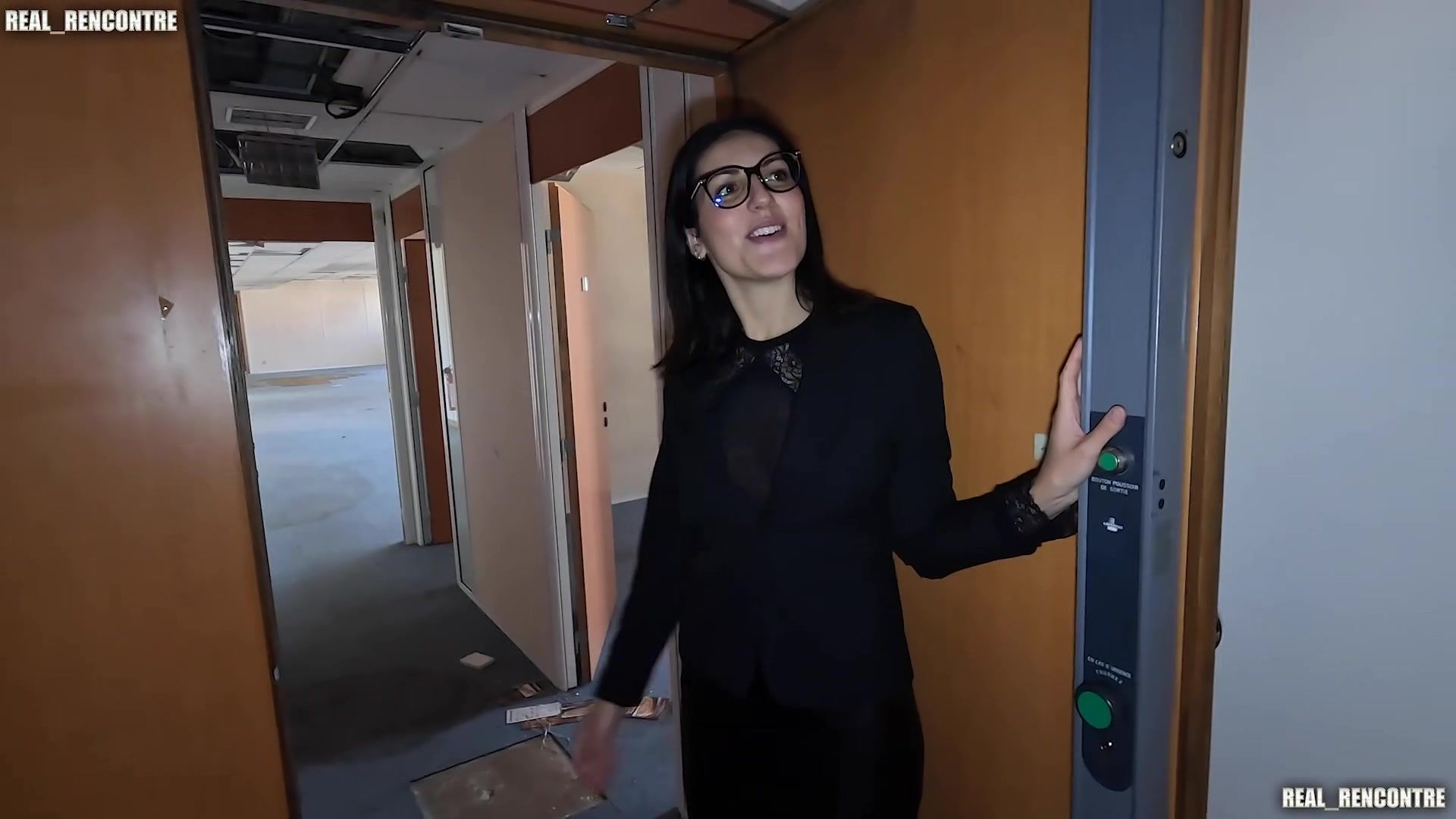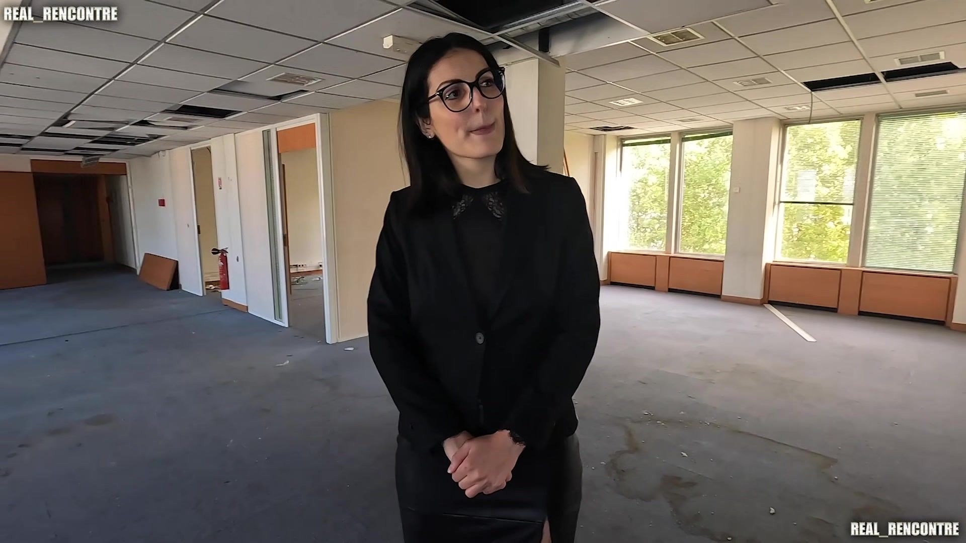 Mischievous dark haired honey at the realtor office
