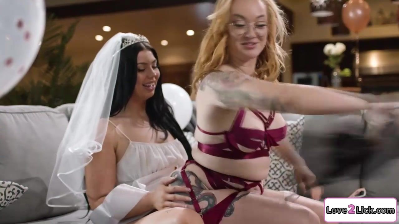 Redhead gives bride to be bff a lapdance