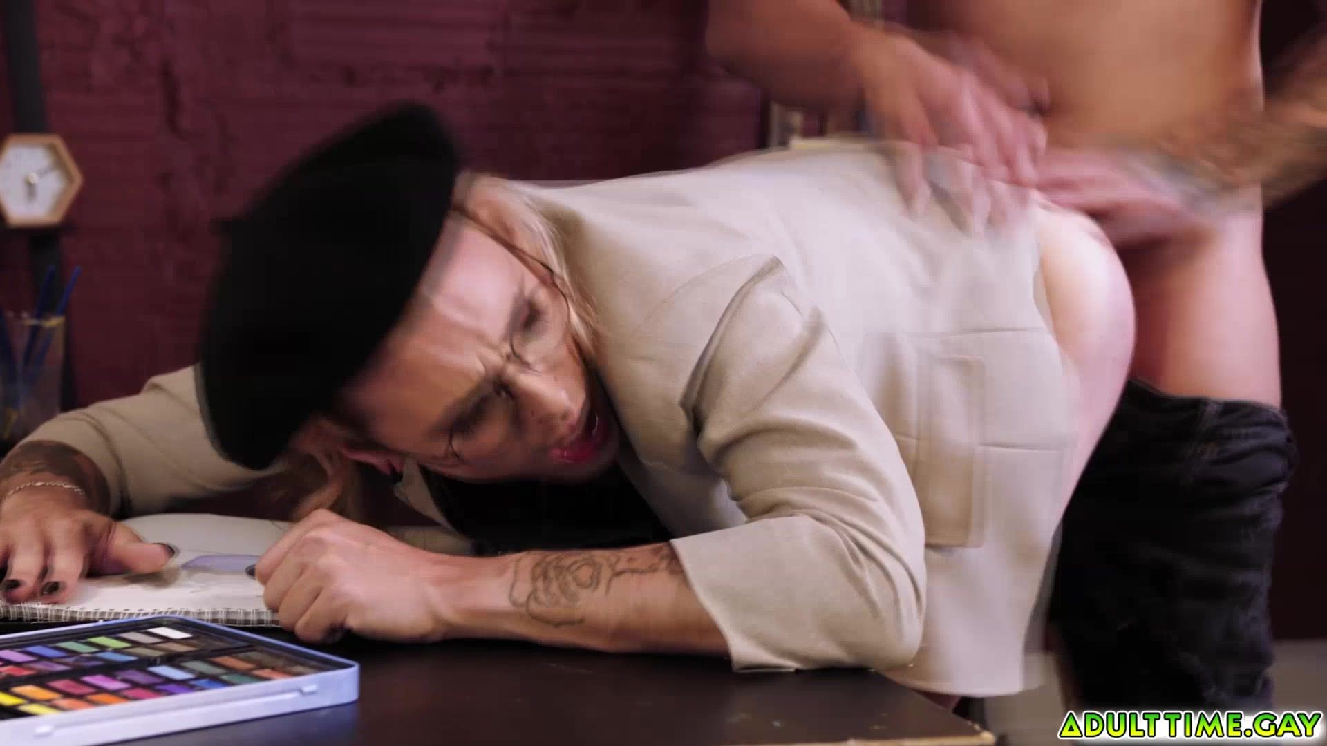 Beautiful femboy Axelle Rose is donning a beret and short plaid skirt ready to create works of art while being quite the work of art himself But as this art student contemplates his latest project and he cant help but feel like something is missing