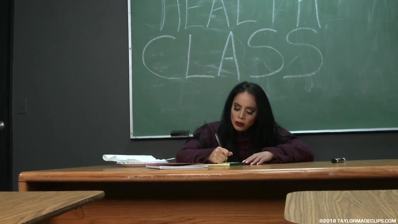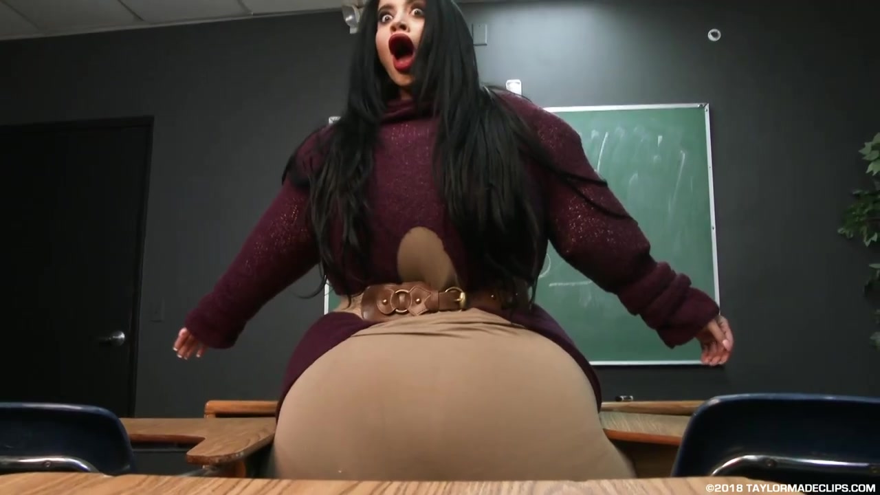 Dark Haired is inflating in the classroom and getting fatter and thicker beyond what she could imagine