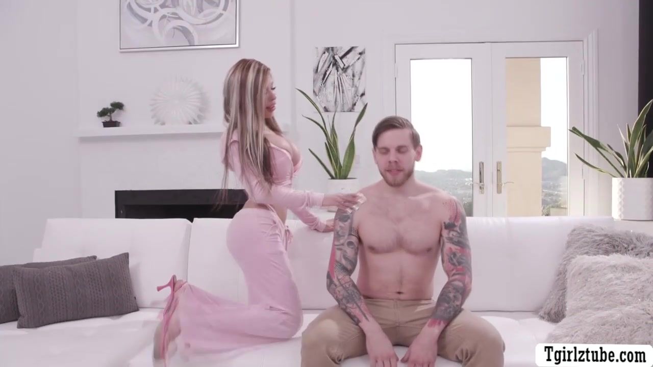 Big tits shemales Eva Maxim and Brittney Kade are kissing Steve Rickz on the couch.After that,they throat his hard big cock passionately and in return,Steve bareback fucks their tight wet asses so deep and hard.