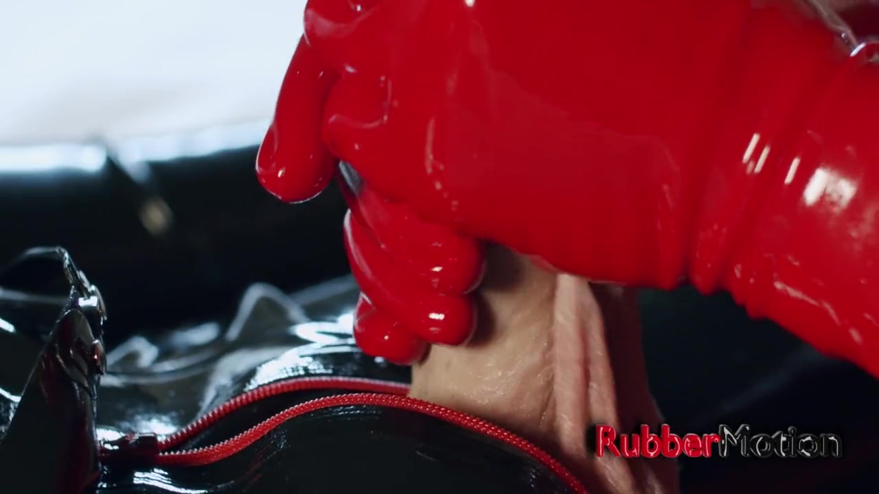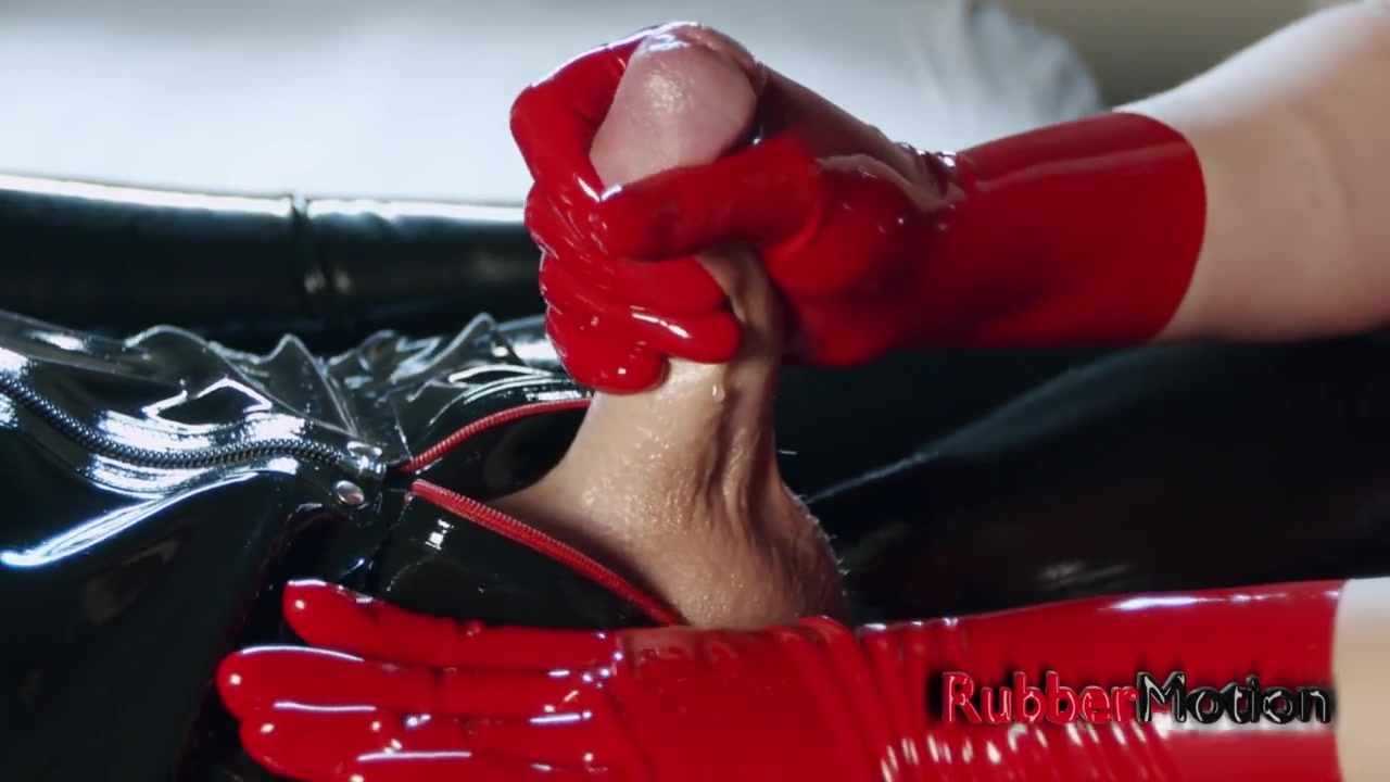 three Ejaculations In See-Through Spandex Mittens