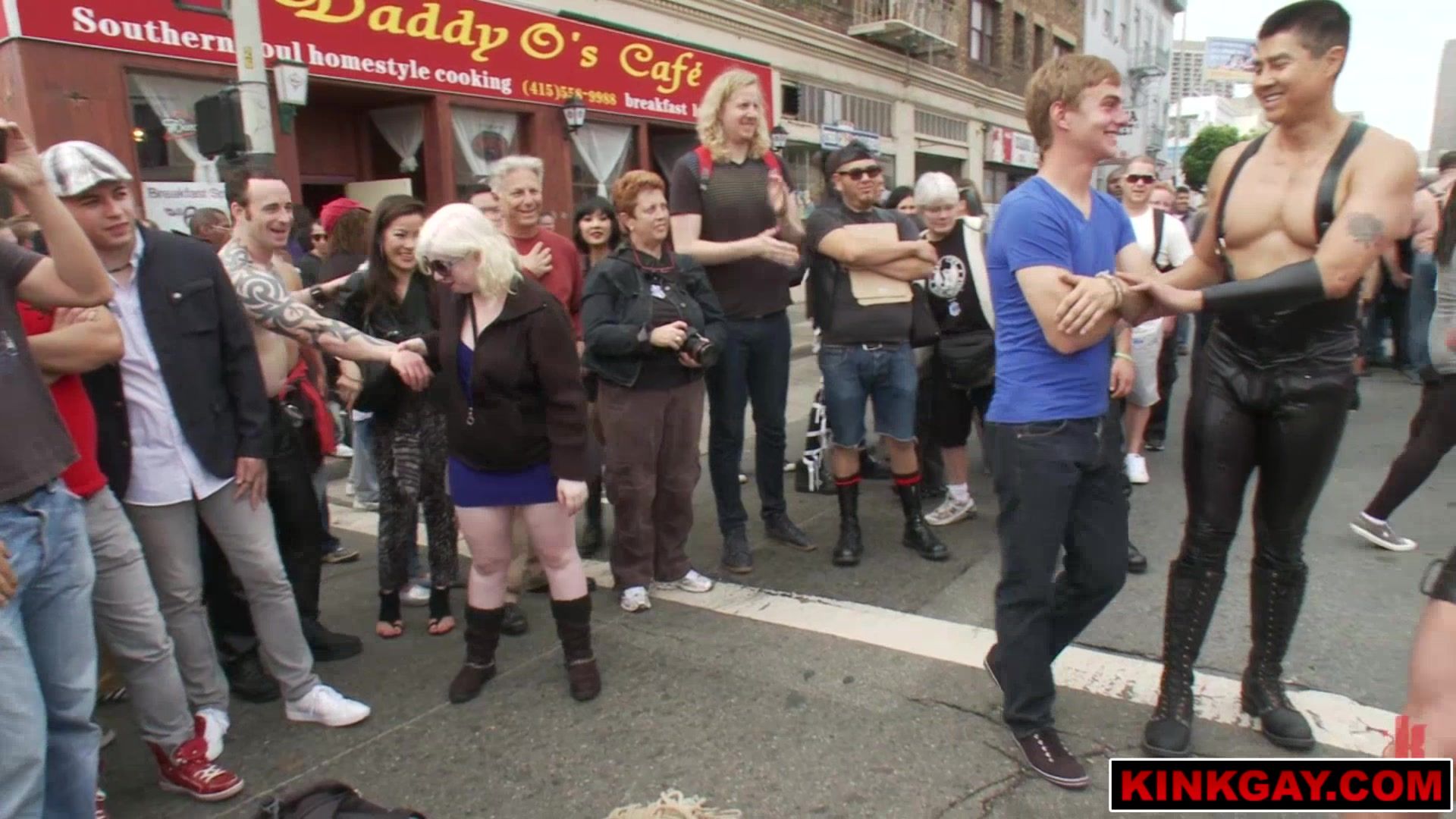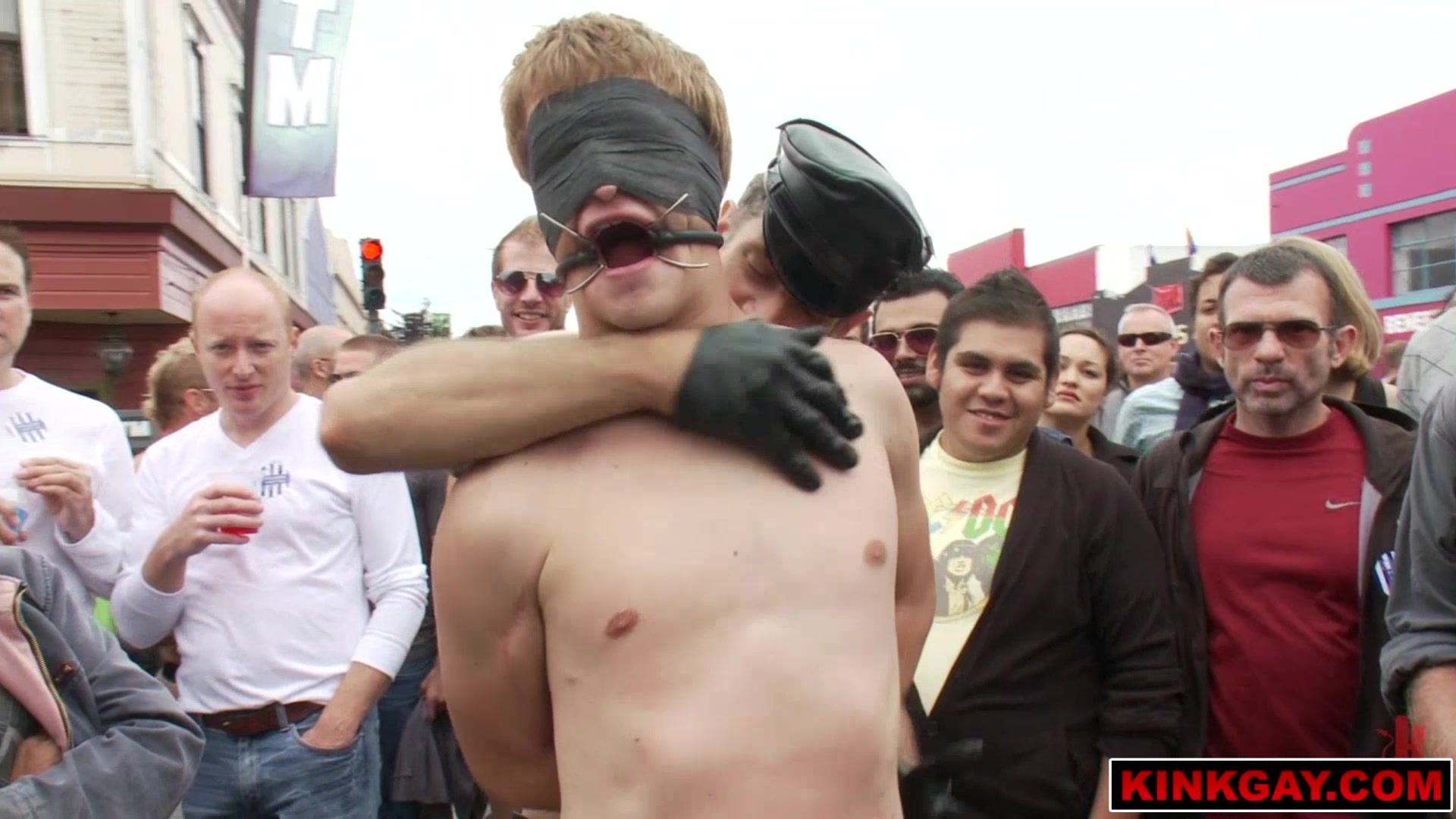 Sebastian Keys volunteers to get tied up but we take it a step further and cut his clothes off too. The submissive pair is flogged with hard cocks as we block traffic. When the guys get horny from all the street action we take over a sex shop where Sebastian becomes a whore for any passerby!