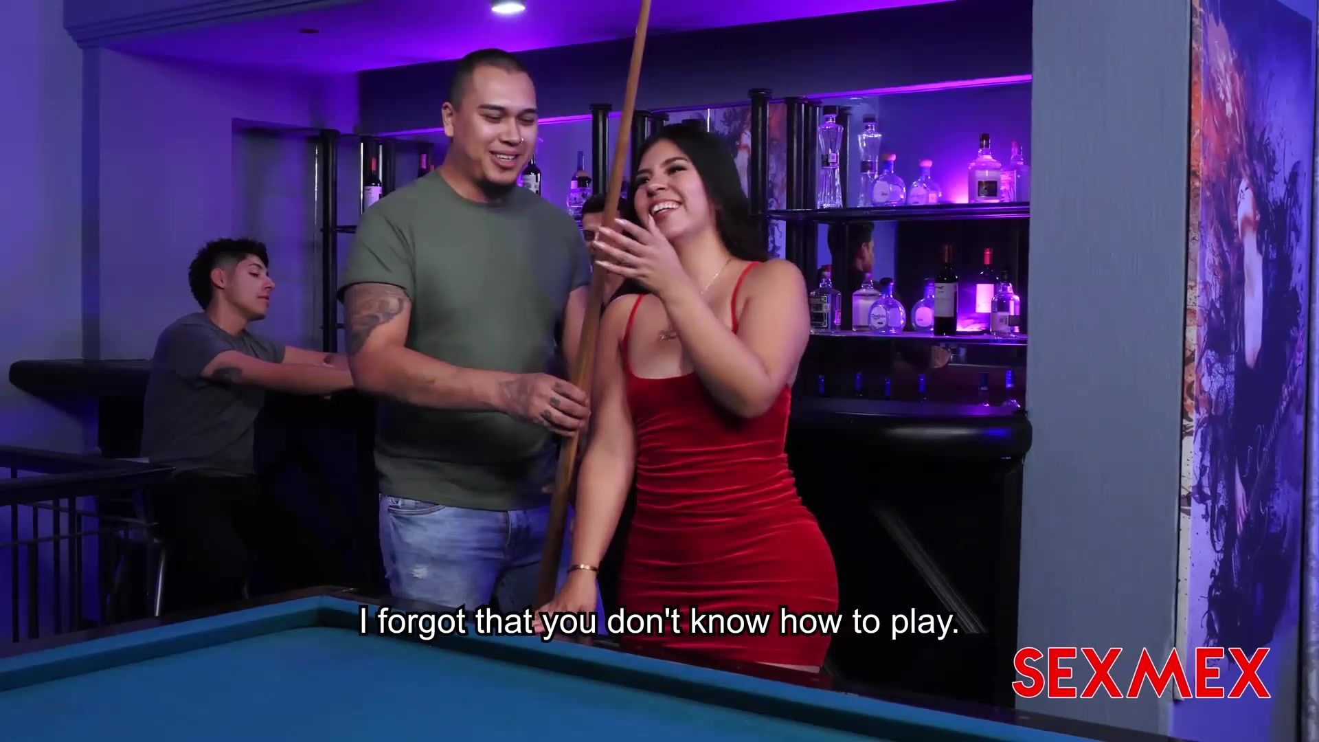 A scumbag takes his little stepsister Elizabeth Márquez to the pool halls dressed like a slut and offers her to the locals.