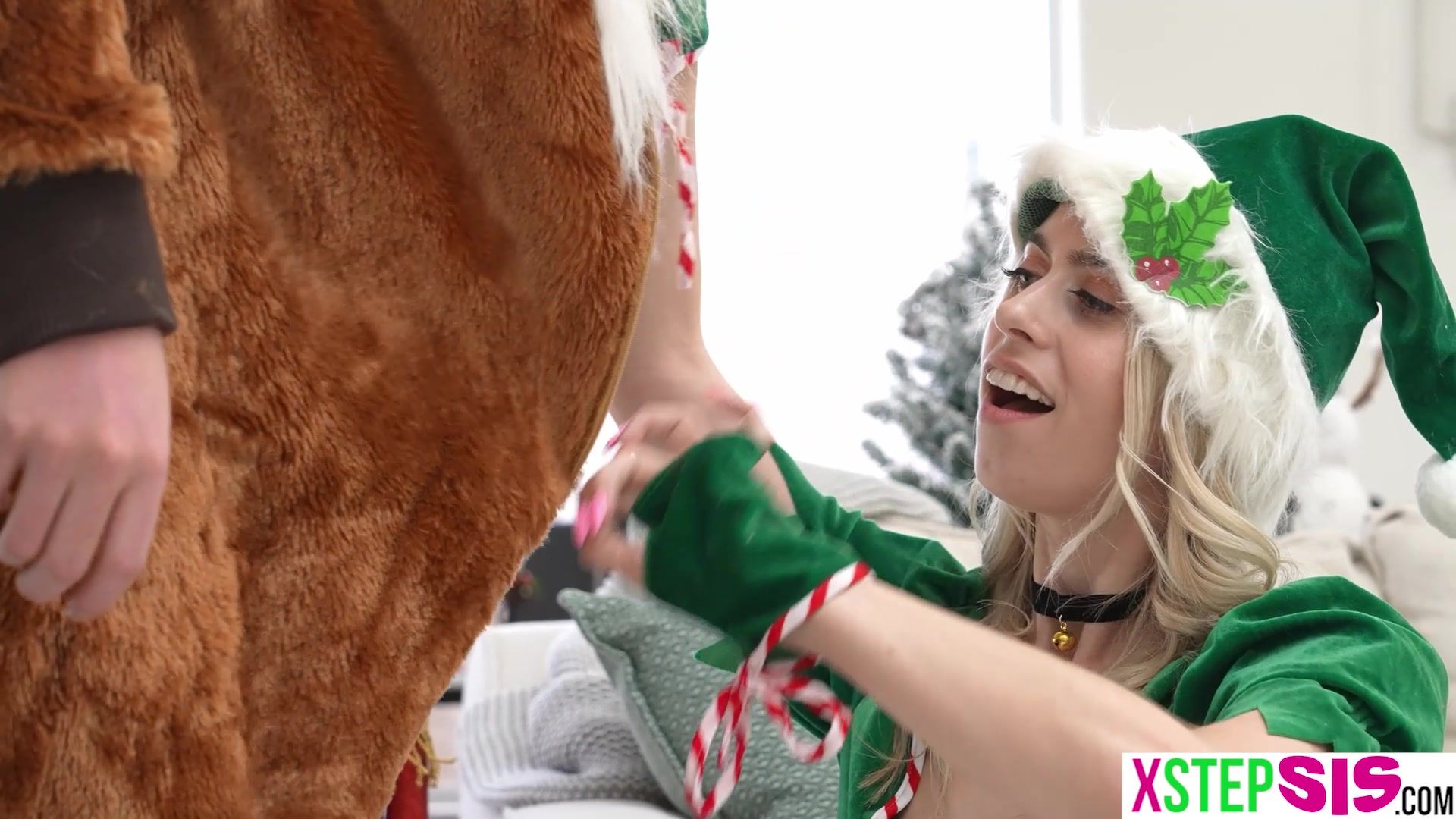 Santas helpers are stepsister Jill Kassidy and her latina BFF Xxlayna Marie and they teased stepbro before they fucked him together in a threesome! Christmas came early this year and stepbrother got lucky with these two fine teens together on his cock!