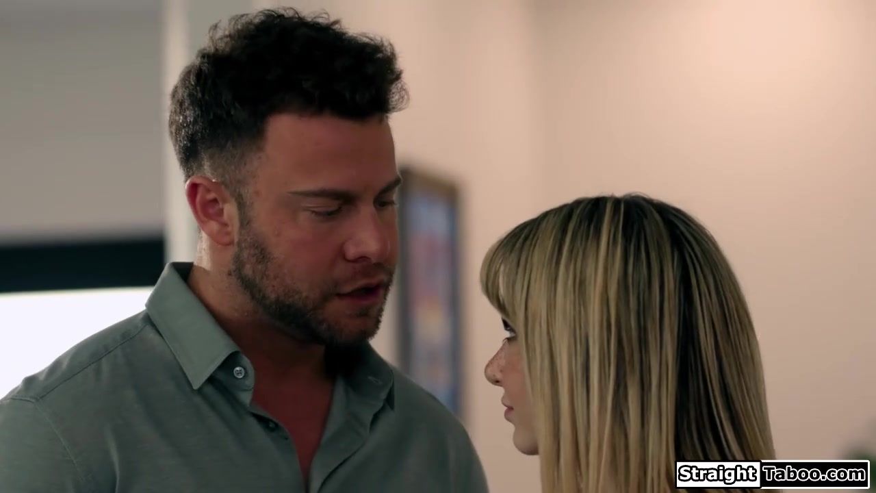 With my stepdaughter out of control I see no other option than to teach a lesson.I grab her firm and spank her ass.My last resort is to take my dick out and have the petite small tits blonde deepthroat me.I will fuck that smile off your face