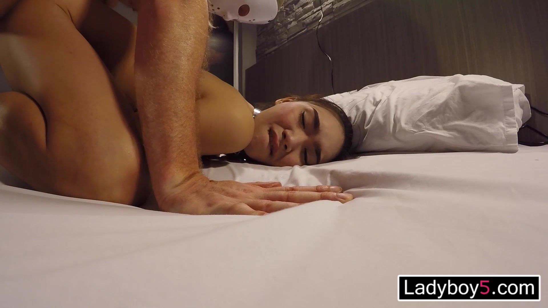 Cock locked handcuffed Asian ladyboy sex