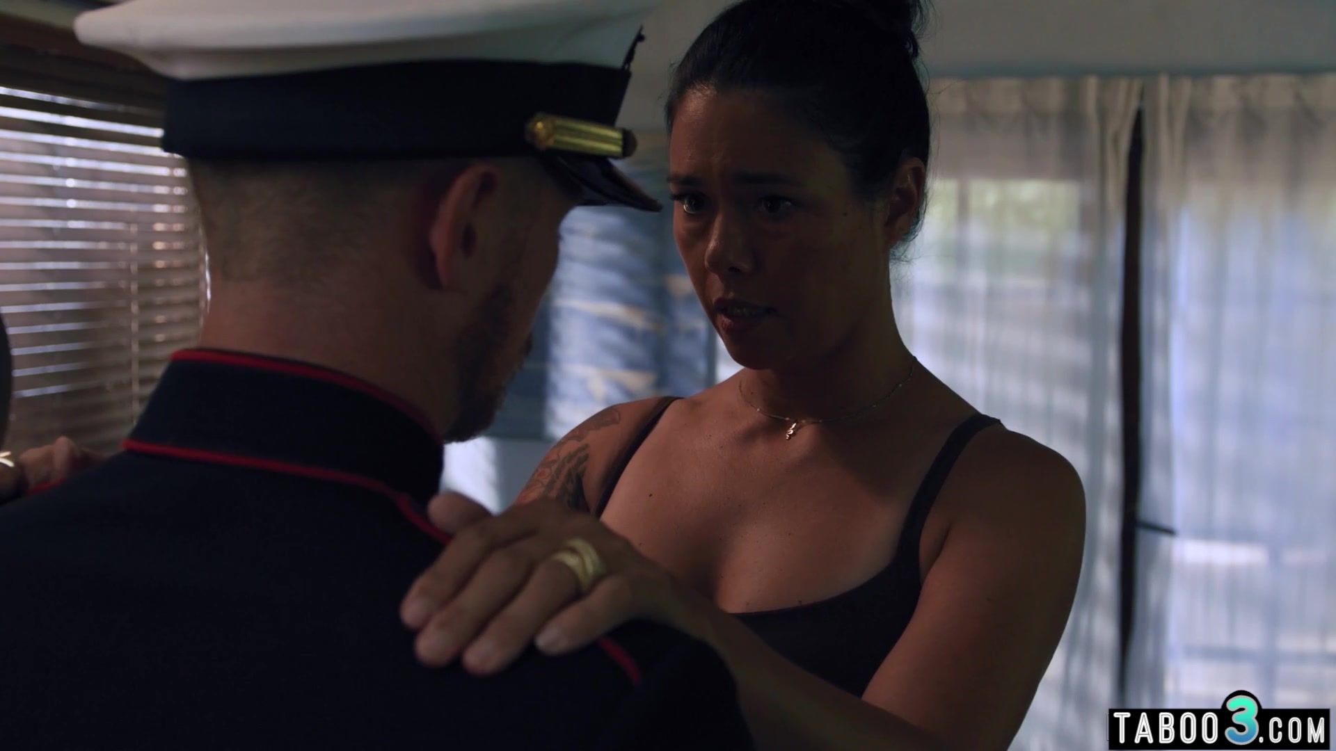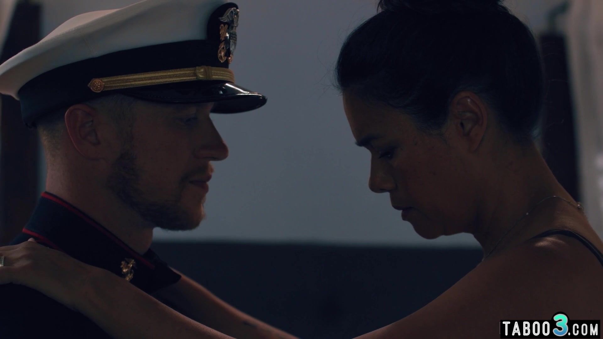 Recently widowed asian MILF stepmother Dana Vespoli with big boobs asks her stepson to take on her husbands uniform what makes her pussy wet so she wants more and big cocked stepson has to console and taboo fuck the sad slut