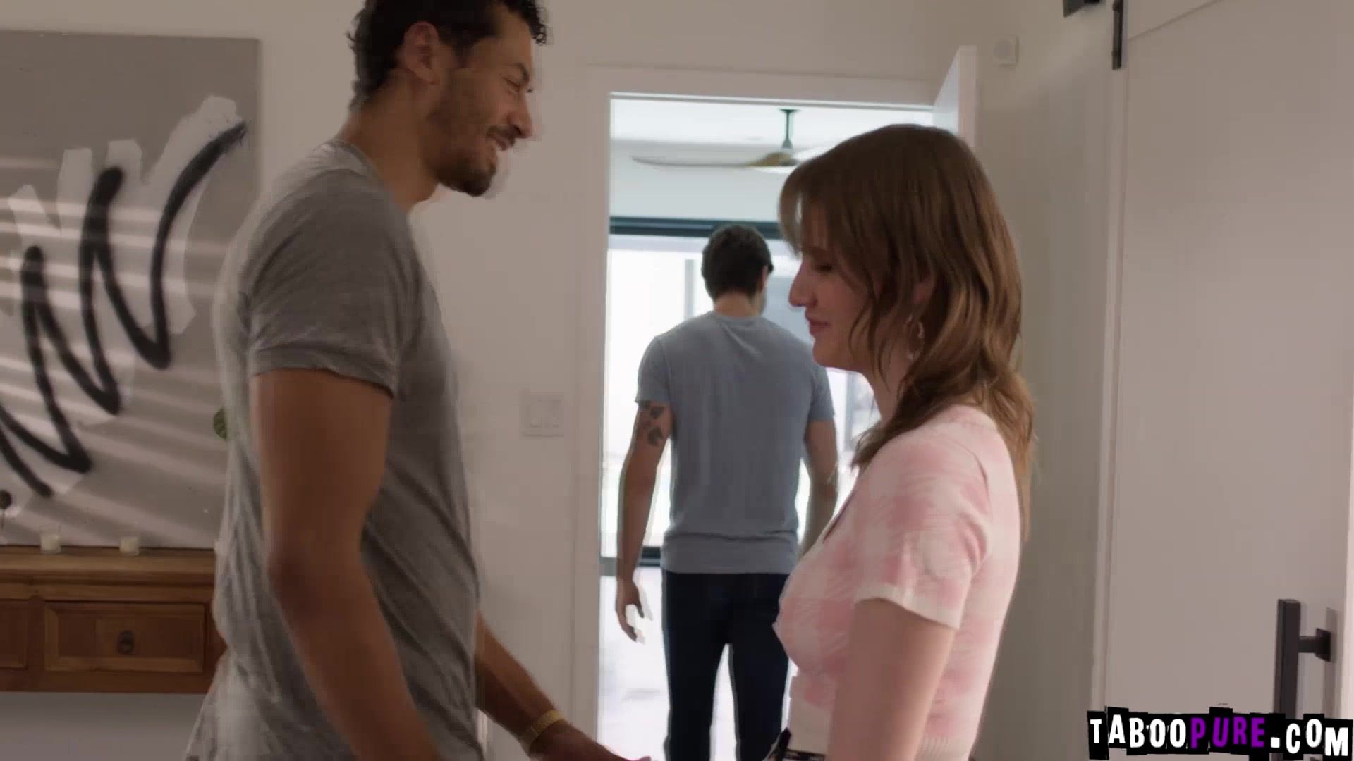 Alex Jones and Melody Marks dont hesitate continuing to fuck as Ken watches TV next to them But Ken cant help but ask if he can join The couple are a bit taken aback but resolve to reward their host for his sublime hospitality with a threesome