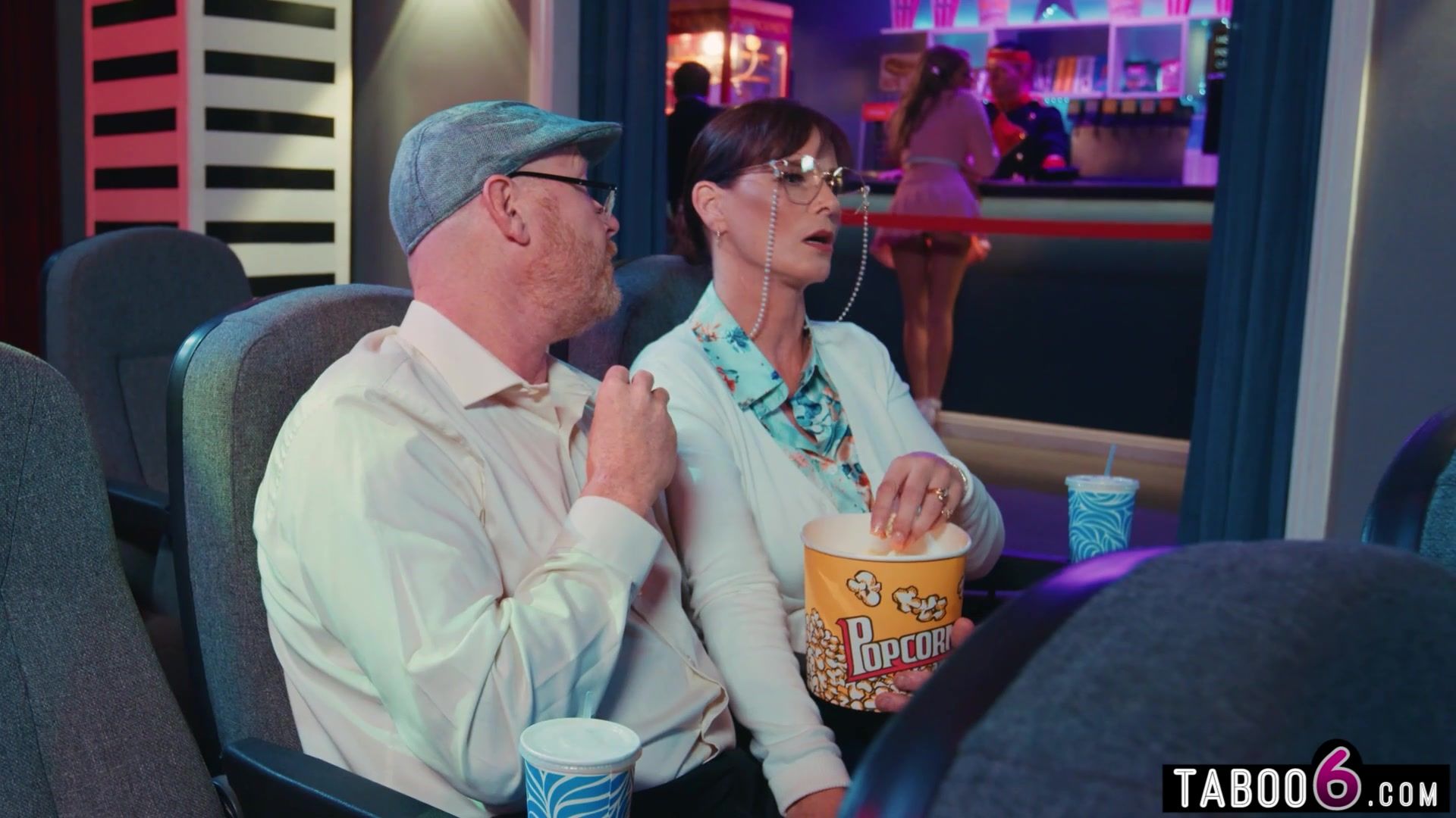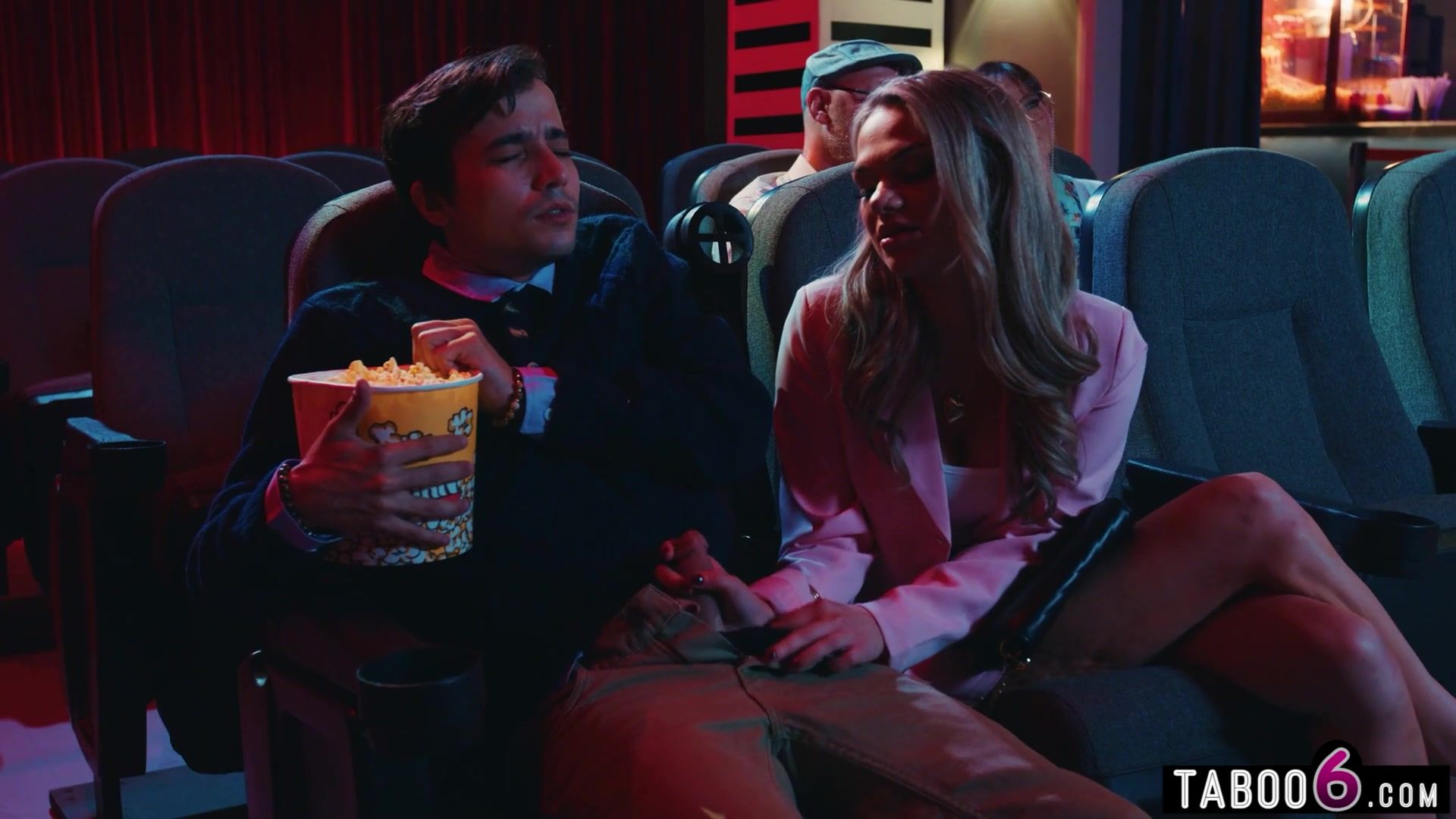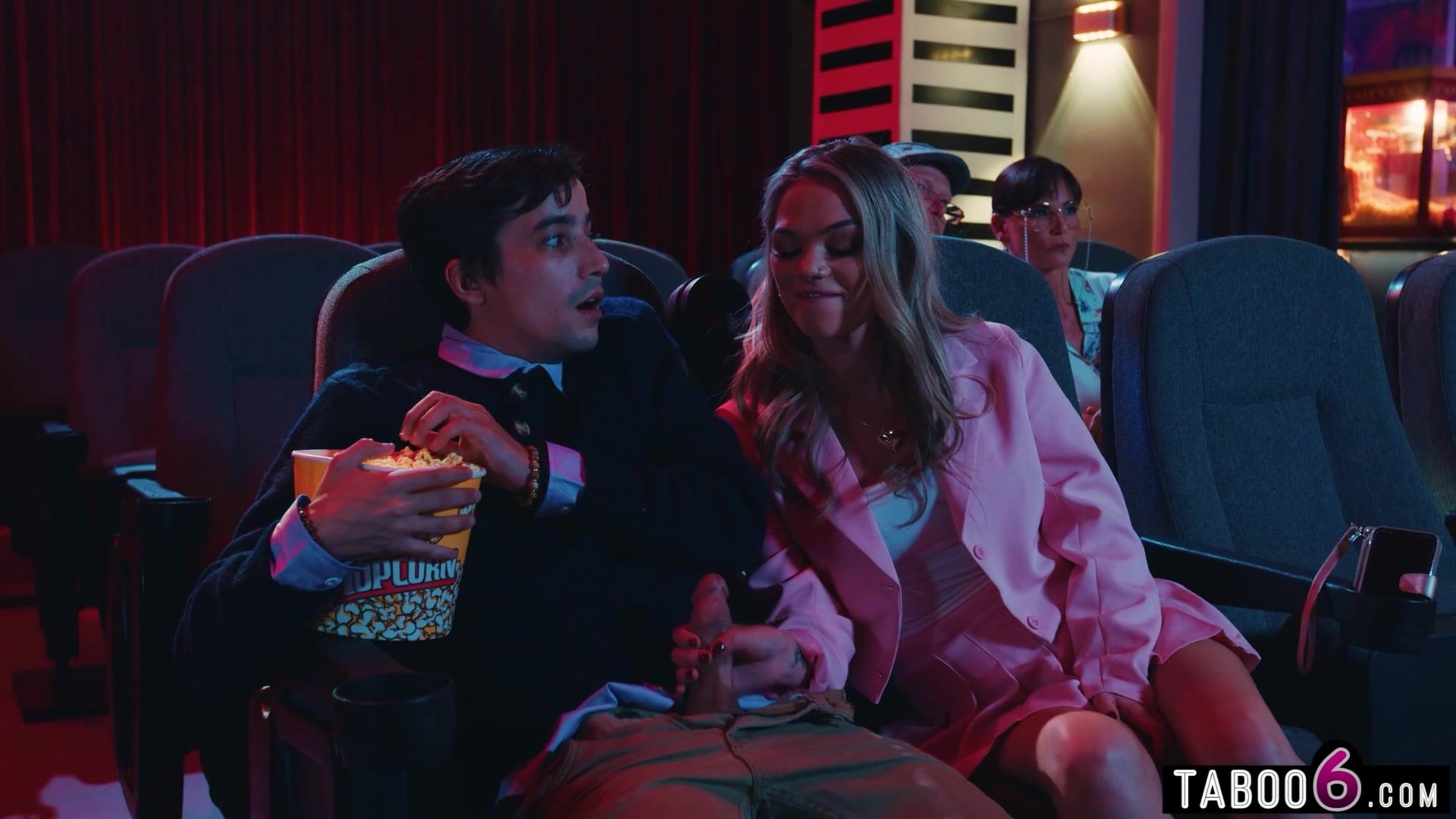 Instead of seeing a vid, thrilled femmes are having a casual three way in the theatre