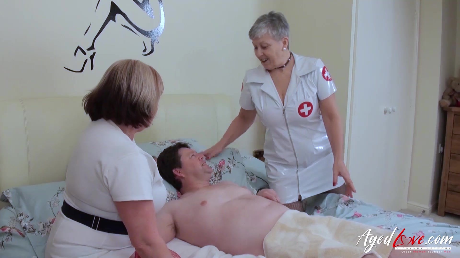 AgedLove Two old horny nurses come to comfort an old patient with their tits