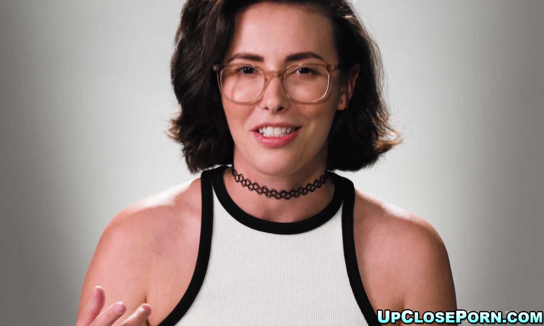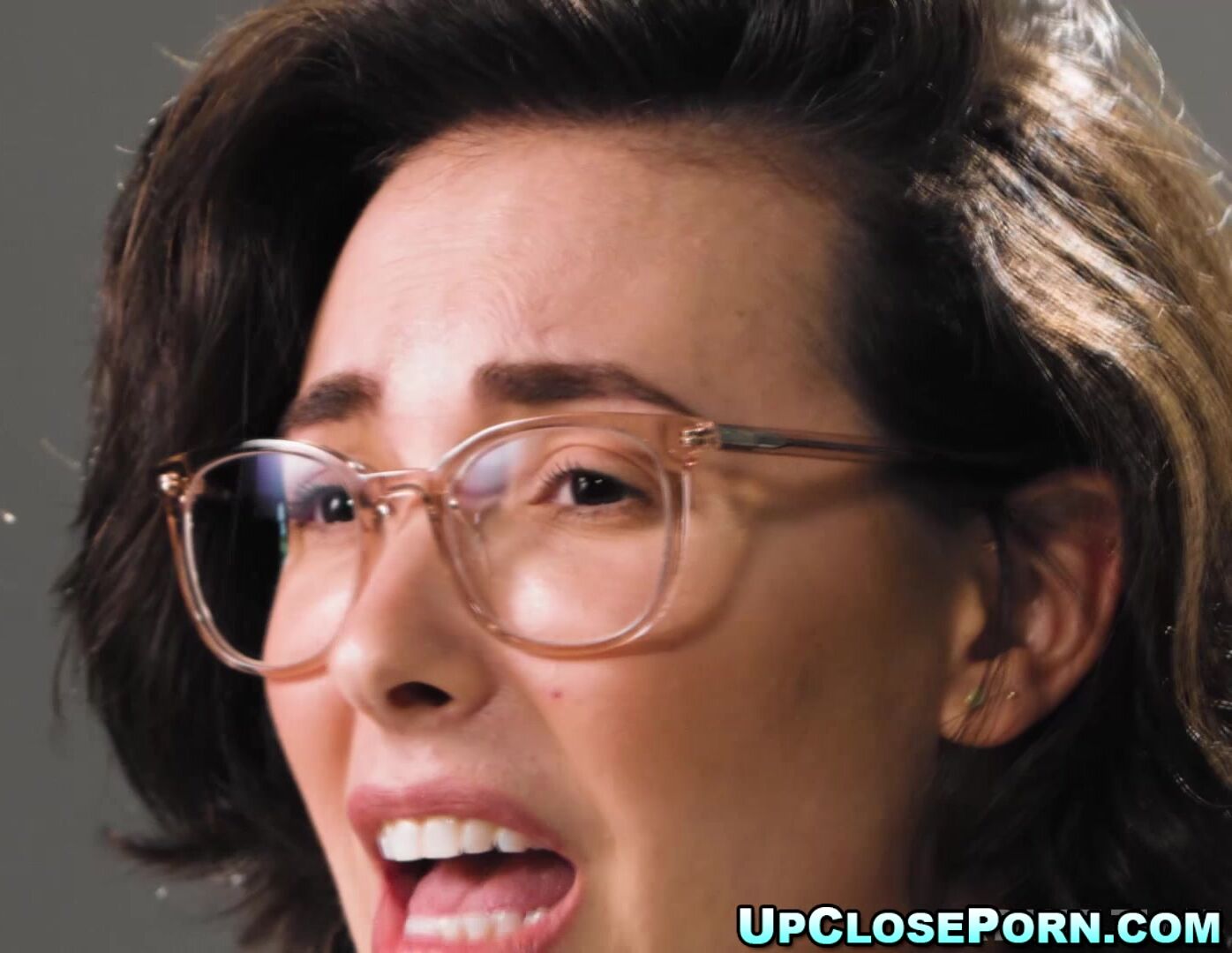 Beautiful brown-haired Casey Calvert voices her emotions as her draped paramour smashes her