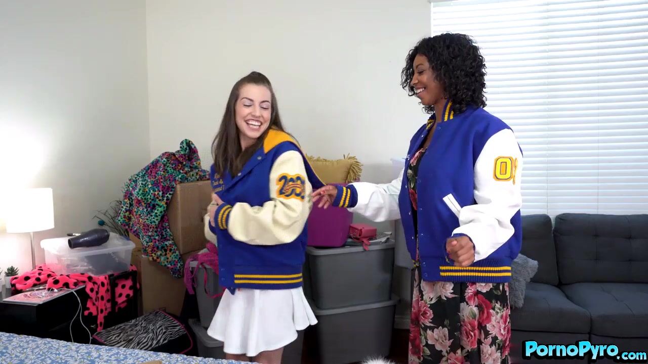 It's College Dorm Moving day and Spencer is moving into her Dorm room and it's her first time away from her Family. She's a cheerleader and has her cheerleader jacket and PomPoms and needs help bringing all her boxes into her new dorm room. Her Sponsor, September is there to answer