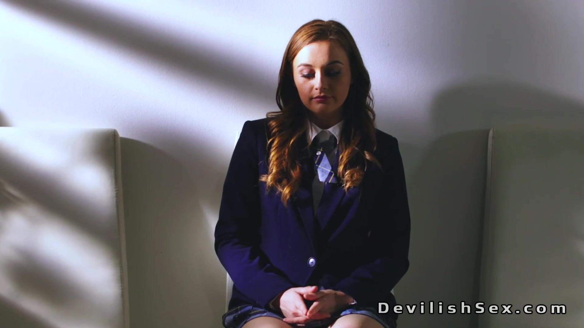 Hot brunette [censored] Danni Rivers fantasies and masturbates in a waiting room till handsome dean Damon Dice ivites her in for a blowjob and fuck with big cock