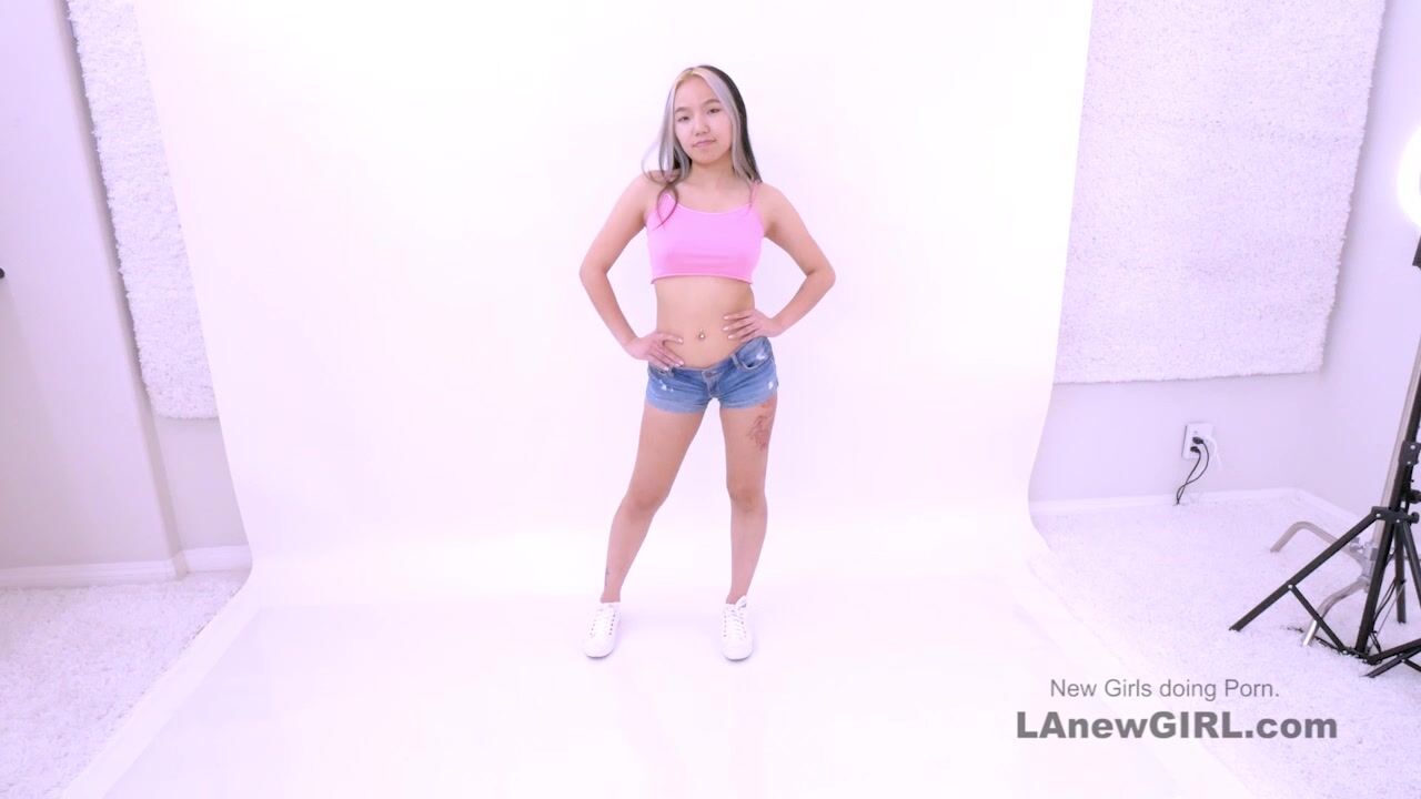 Brunette fucks little asian girl strapon