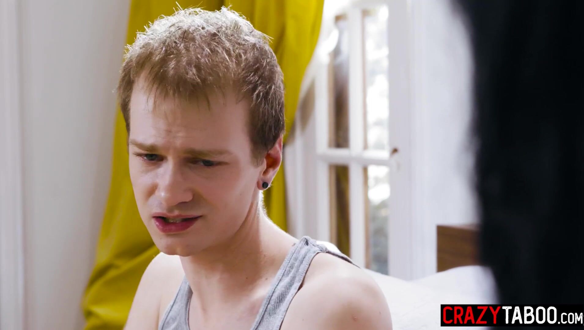 Hunk stepson caught TS stepmom masturbating on bed