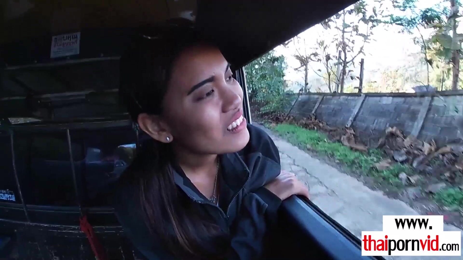 Petite amateur Thai teen Cherry with small tits and her european lover arrives to their hotel room after a long trip The guy wants to take a rest but the skinny asian slut needs his seeds so she gets on her knees and starts sucking his big white cock