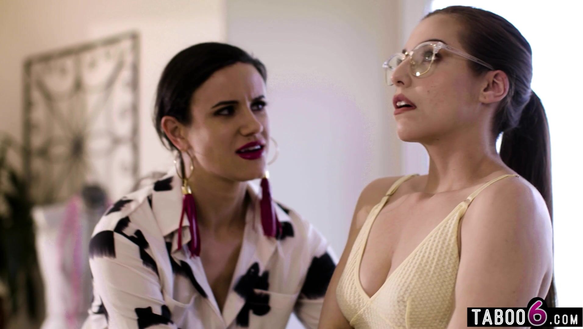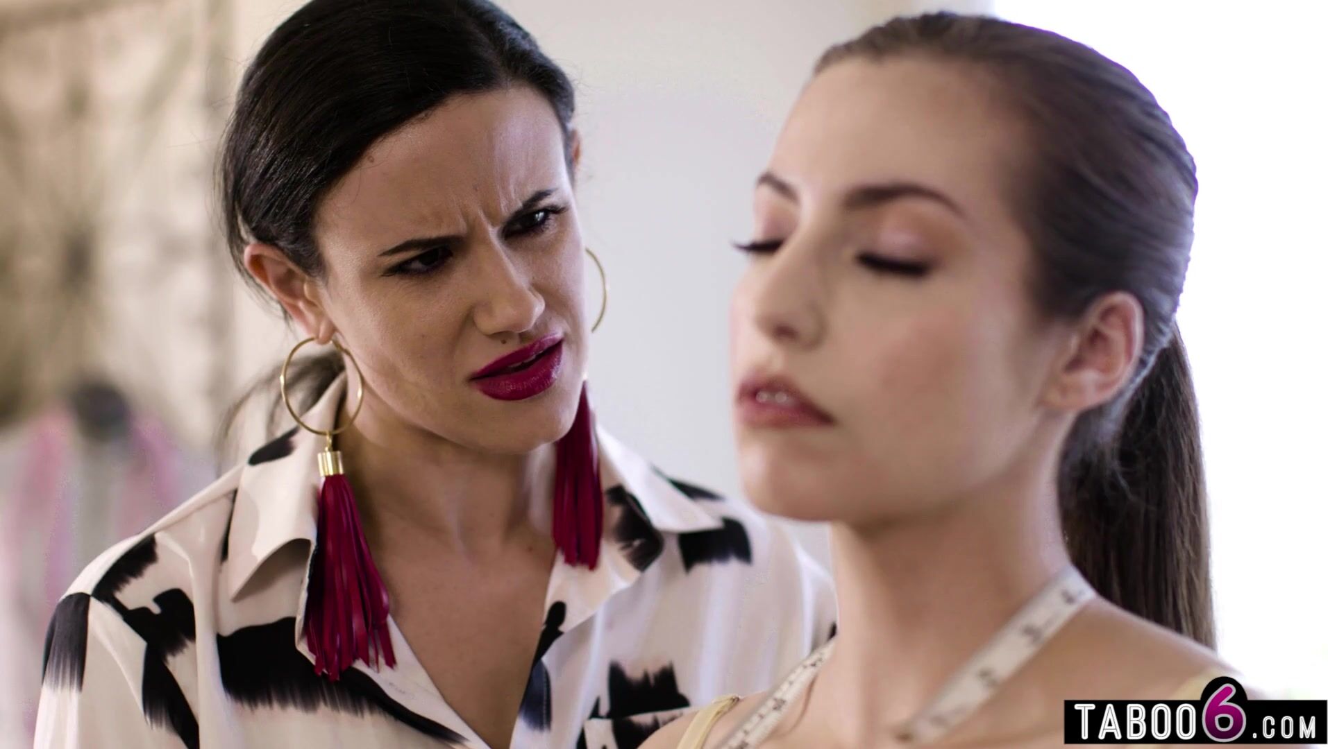 Shy petite babe seduced by milf designer