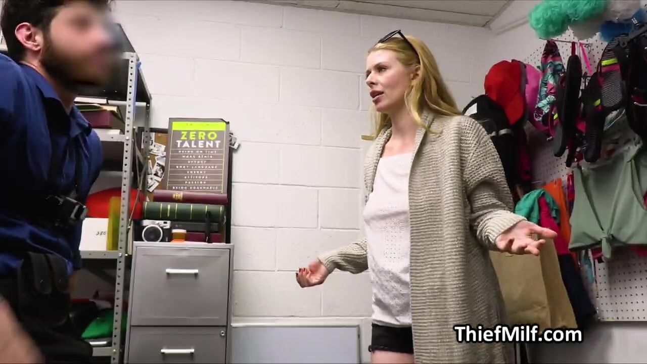 She didnt expected this to happen. She got busted for stealing and ended up on a strip search at the backoffice.. which turned to a sucky fucky session!