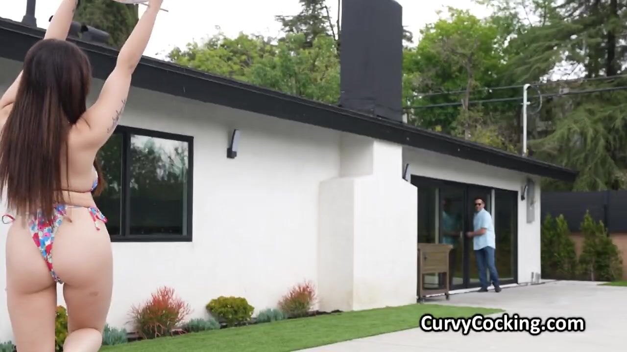 Chloe visits her lucky neighbor. She is wearing a small bikini only to seduce him. She wants to get fucked and she is horny as fuck!