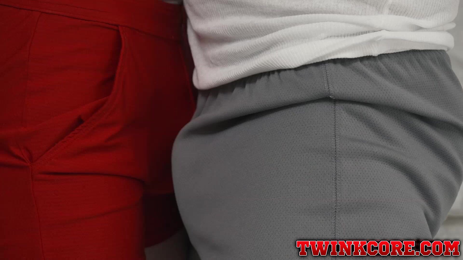 Twink Grand Ducati follows his DILF Coach Ace Banner inside the room. Then they begin to kiss and Ace give Grant a good blowjob. Grants balls began to tighten and both Ace and Grant orgasms began to surge. Ace shot his load all over his belly at the sight of Grant pumping in and out of his hole