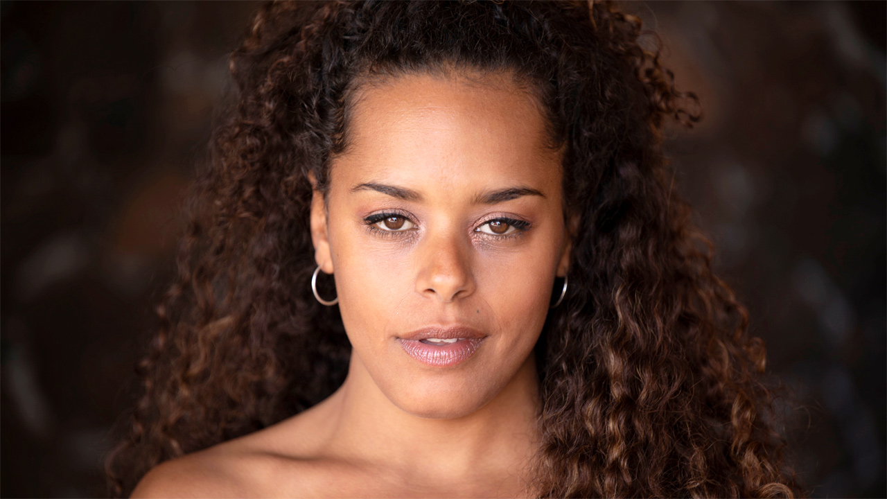 Fantastic Ebony model with curly hair, Romy Indy is having scorching hookup with a white stud