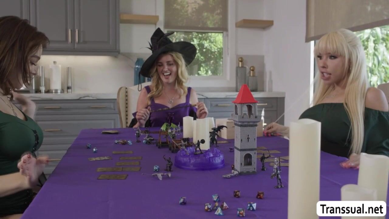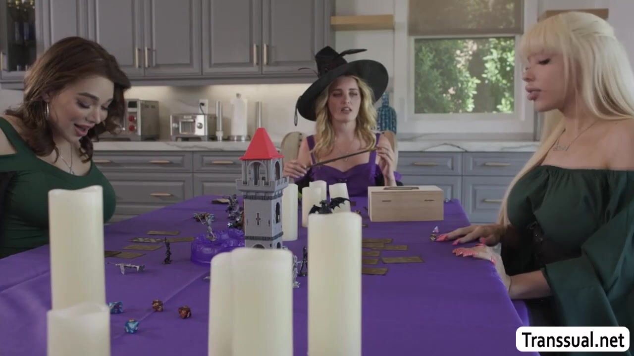 Slut teen Coco Lovelock is hiding under the table while TS Emma Rose and Brittney Kade are playing.She throats their hard shecocks passionately and after that,she let them fuck her wet tight pussy so deep and hard.
