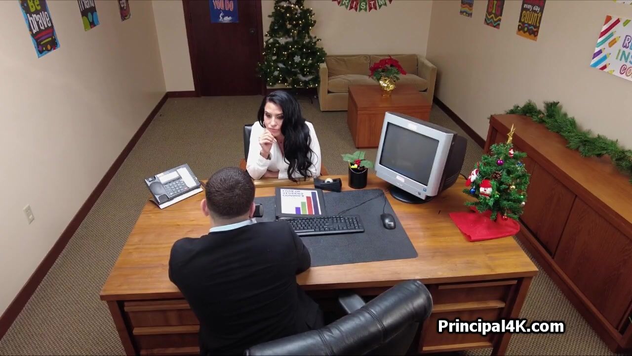 Raven haired milf rides head teacher at his office