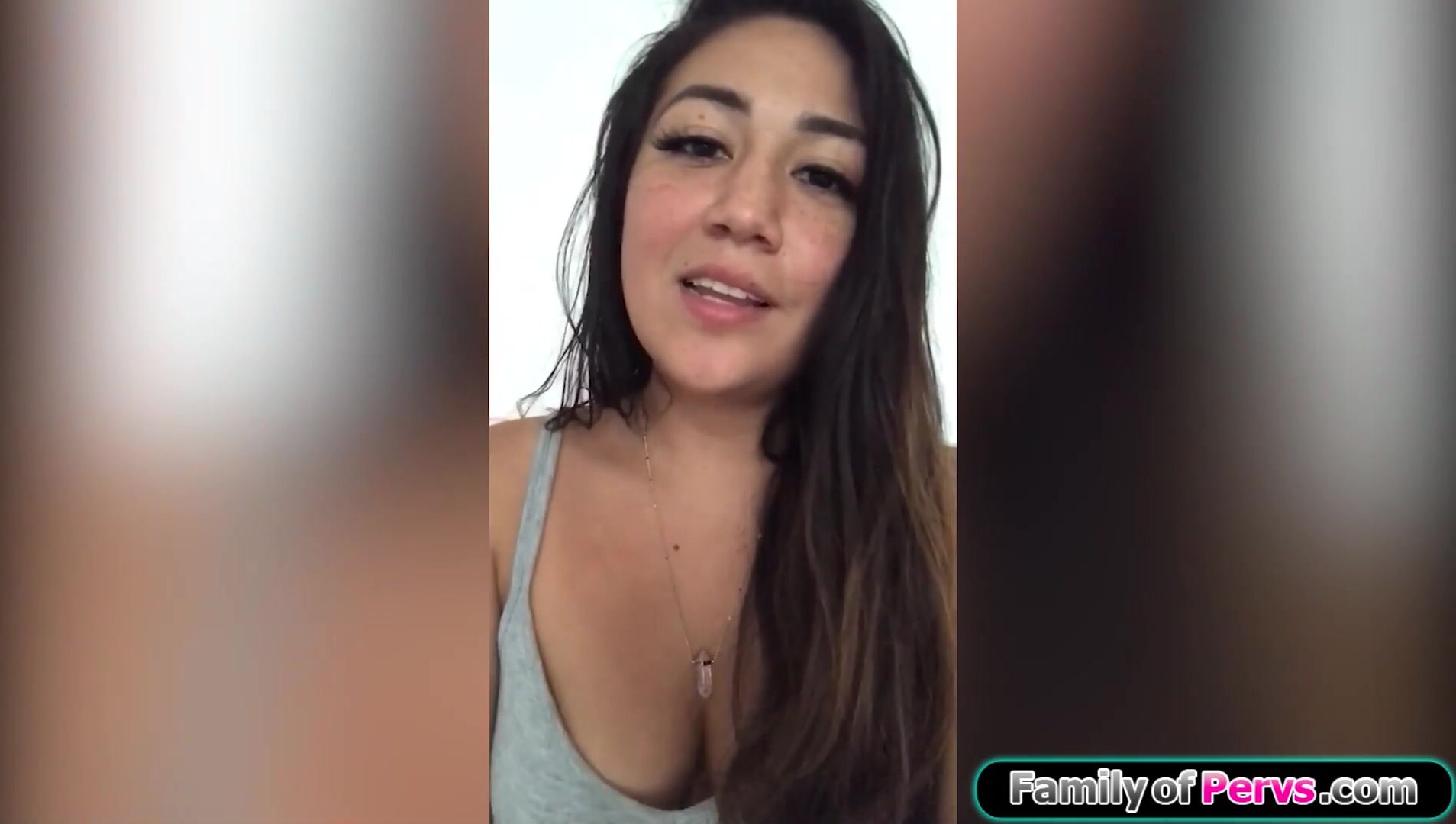 Super hot latina stepsister Lexy Bandera looks at her stepbrother with her bambi eyes while shes on her knees with his big dick in her mouth.He puts his hand on his small tits petite brunette stepsis while he fucks her and he cums in her mouth