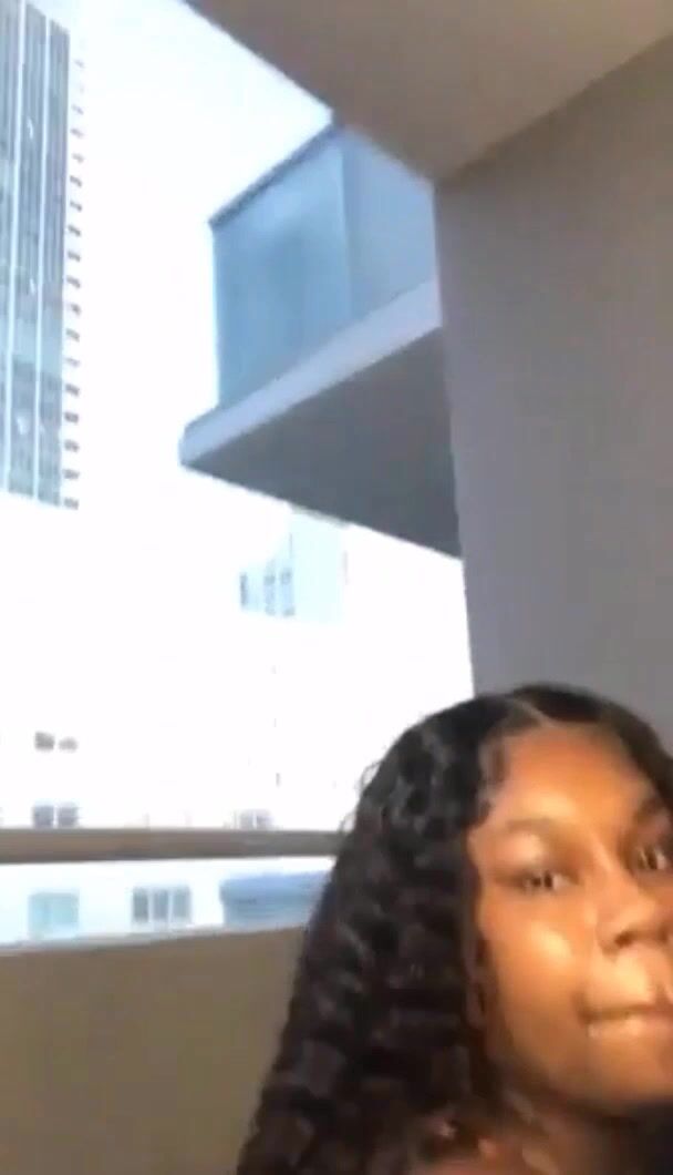 Big Tits Ebony Sucks BBC in a Public Balcony