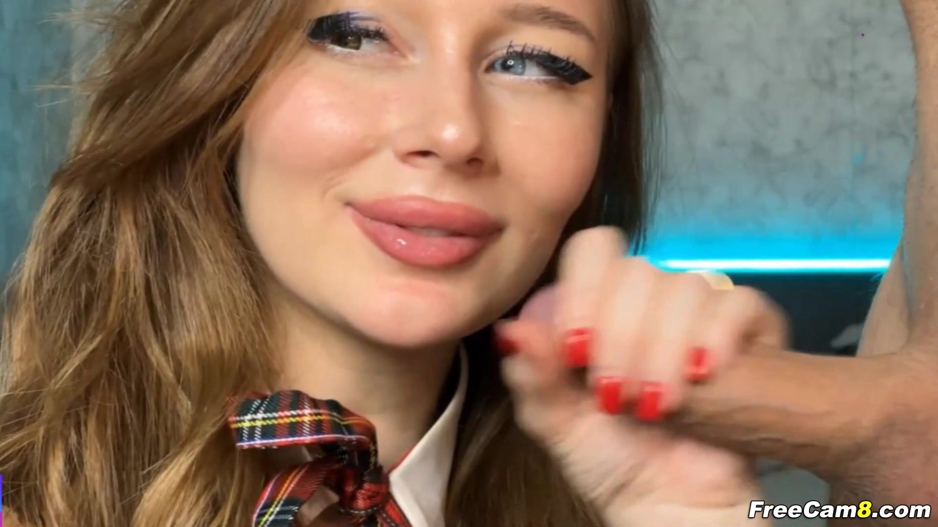 The blue-eyed wife's soft pink lips enveloped his throbbing cock, causing him to moan in so much pleasure. Enthusiastically bobbing her head up and down, her bright blue eyes locked onto him, as she takes him deep into her mouth. The woman's wide blue eyes gazing up at her partner, full of anticipation and desire. Her full lips parted as she eagerly takes him in. And then she positioned herself in a doggystyle and her horny body is waiting for his dick to gets in her wet dripping pussy.