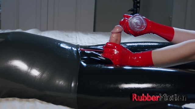 three Ejaculations In See-Through Spandex Mittens