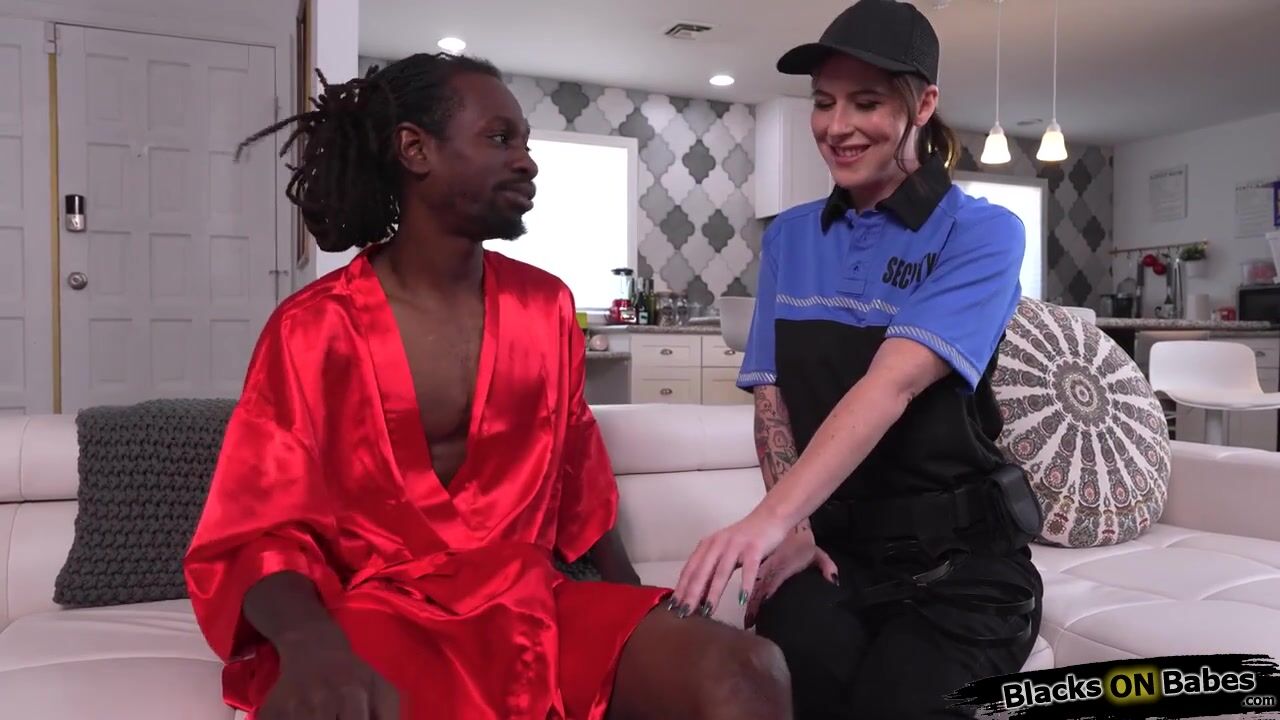 Milf officer Nikki Zee is servicing her black ex bf personally.She starts teasing him and giving blowjob after luring her partner out.The guy strips her naked and goes down eating her shaved pussy.He grabs her big tits while fucking her hard