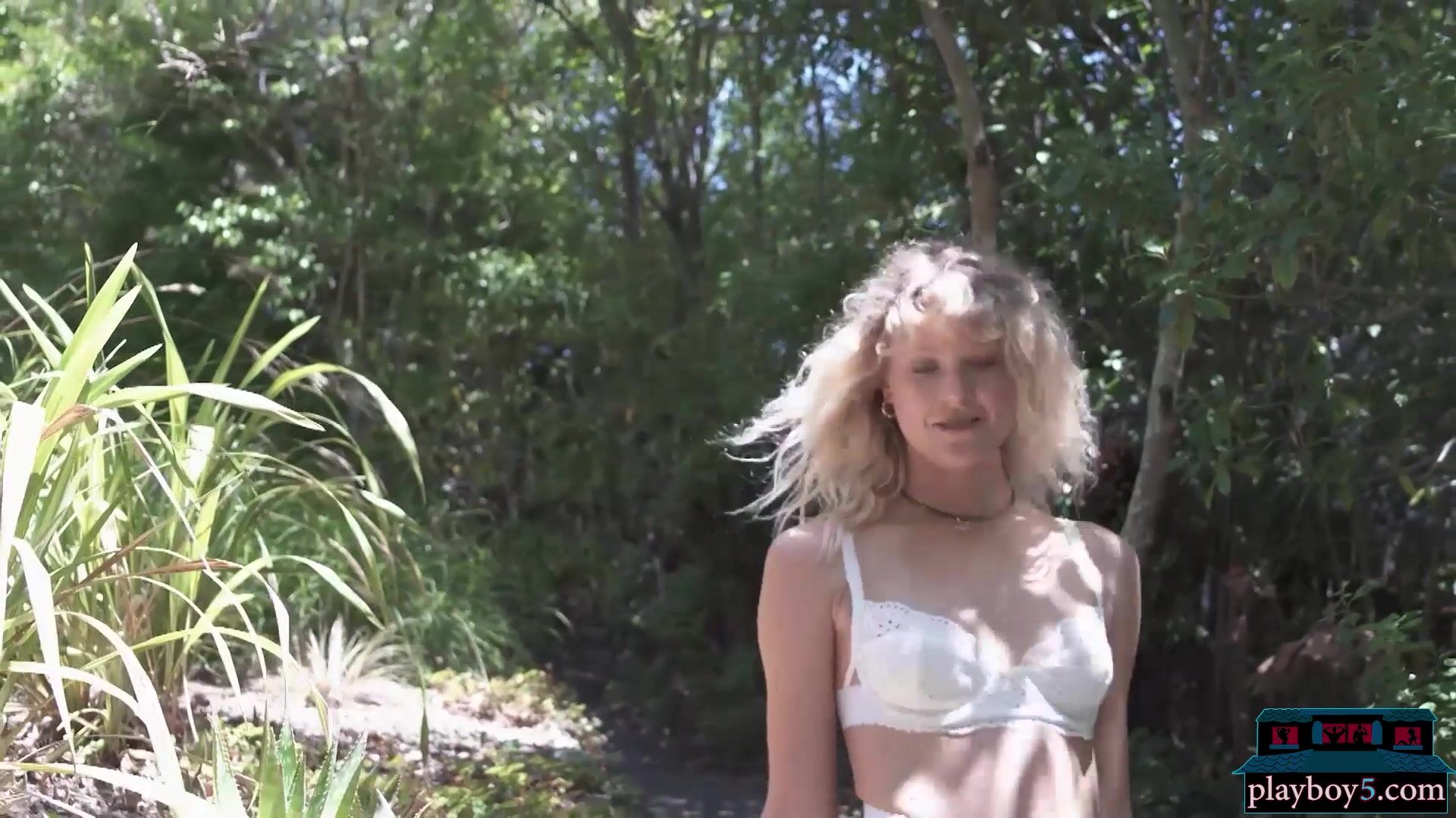Petite blonde MILF painter River gives a hot outdoor striptease revealing that tight body with perfect ass to all of us! Playboy captures her natural beauty perfectly in this setting making for an amazing softcore porn movie!