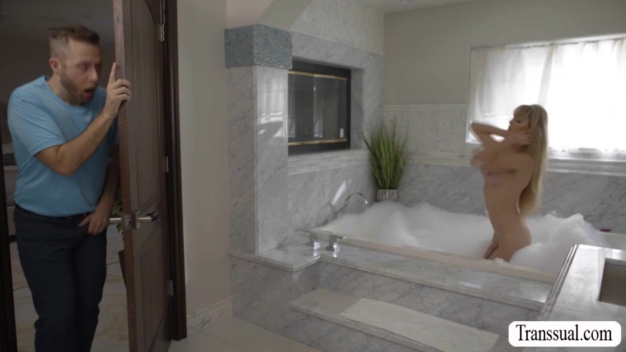 Pervert Joel Someone watches the TS girlfriend of his friend Tori Easton in the bathroom while getting naked.After that,he joins her on the bathtub and they start kissing each other.Next is,he lets her suck his dick before he fucks her ass.