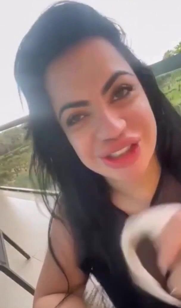 Big Tits Ebony Sucks BBC in a Public Balcony