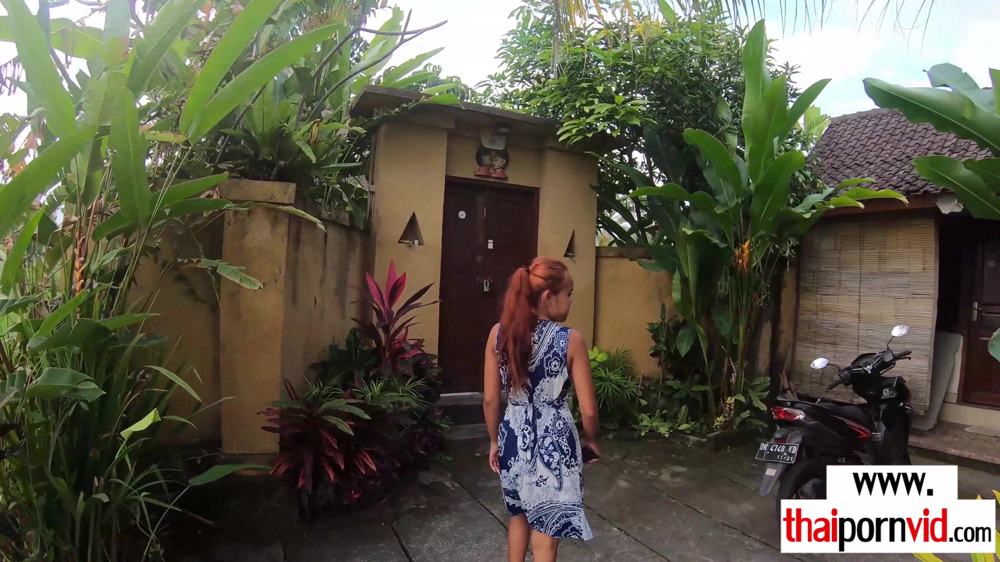 After a small trip european dude orders his petite amateur Thai teen GF Cherry with small tits to satisfy his big white cock in the garden outdoor The obedient asian thot starts sucking his dick then she bends over and he is fucking her exotic pussy