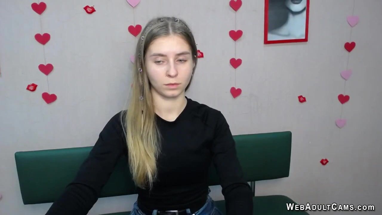 Long haired blonde amateur Ukrainian young babe TaliaSunshin in black sweater and jeans pants takes off trousers and flashes hot ass in red thong on solo webcam show